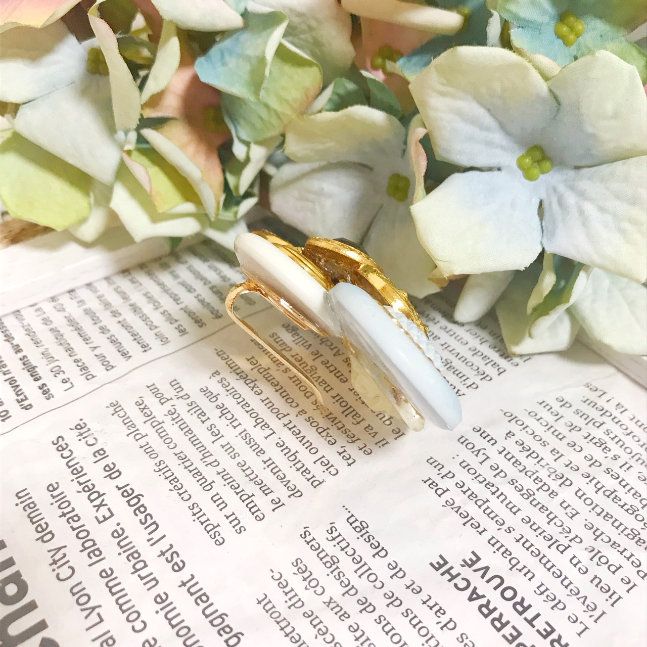 淡いブルーのボタンを基調とした ポニーフック です⌄̈⃝❤︎