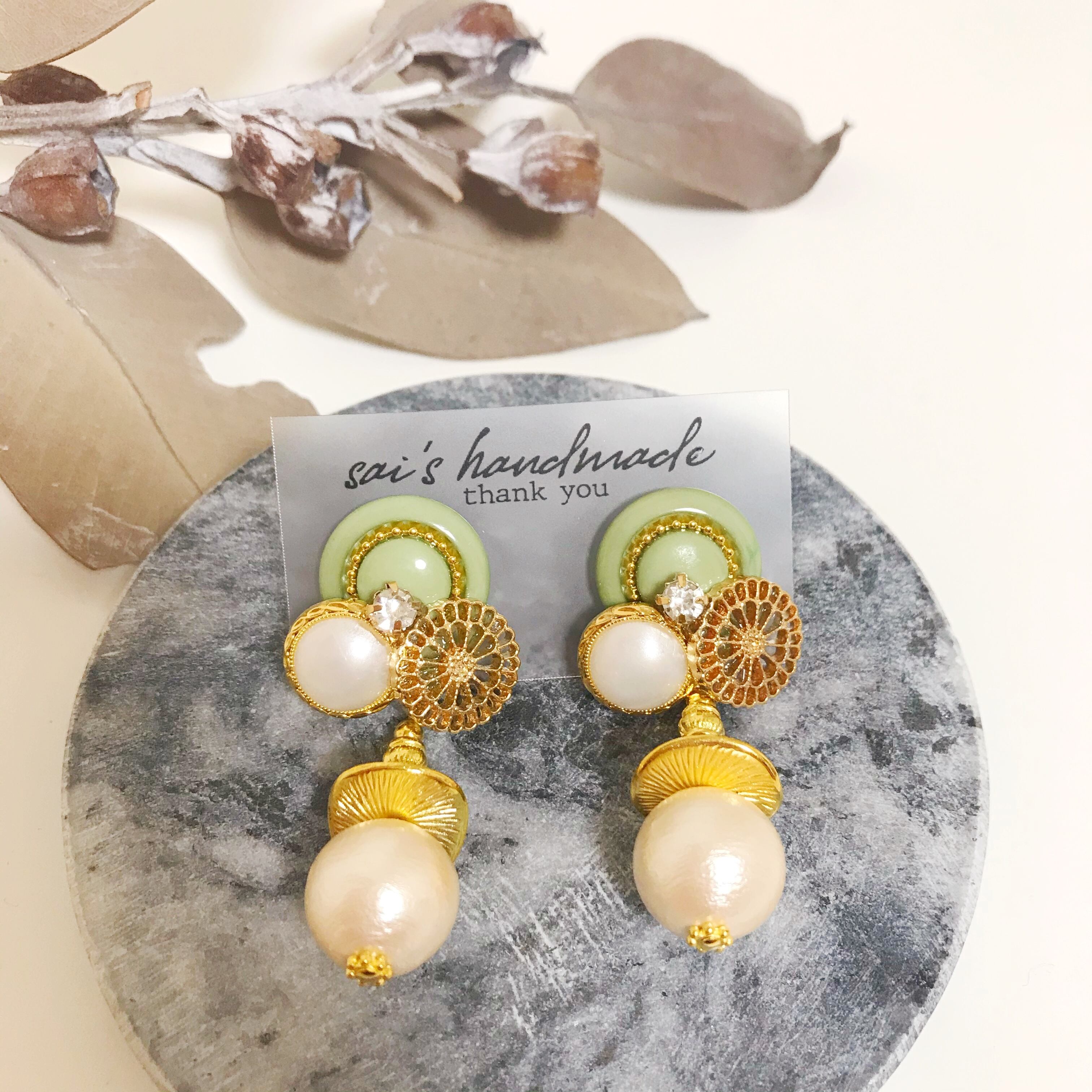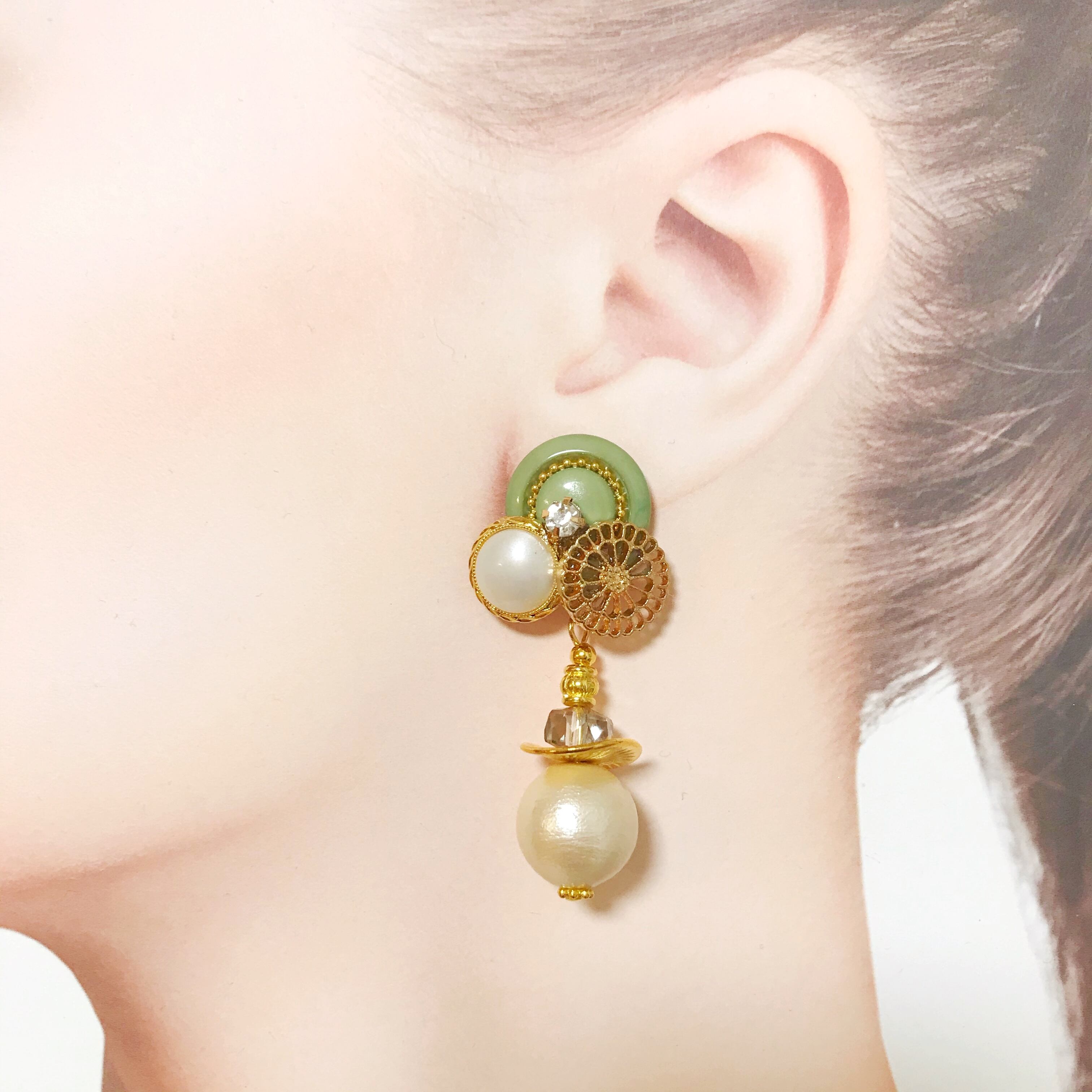 重ねボタン×コットンパールpierce/earring⌄̈⃝❤︎
