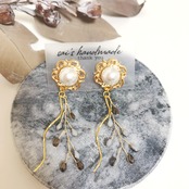 パールボタン×ワイヤーガラスpierce/earring⌄̈⃝❤︎