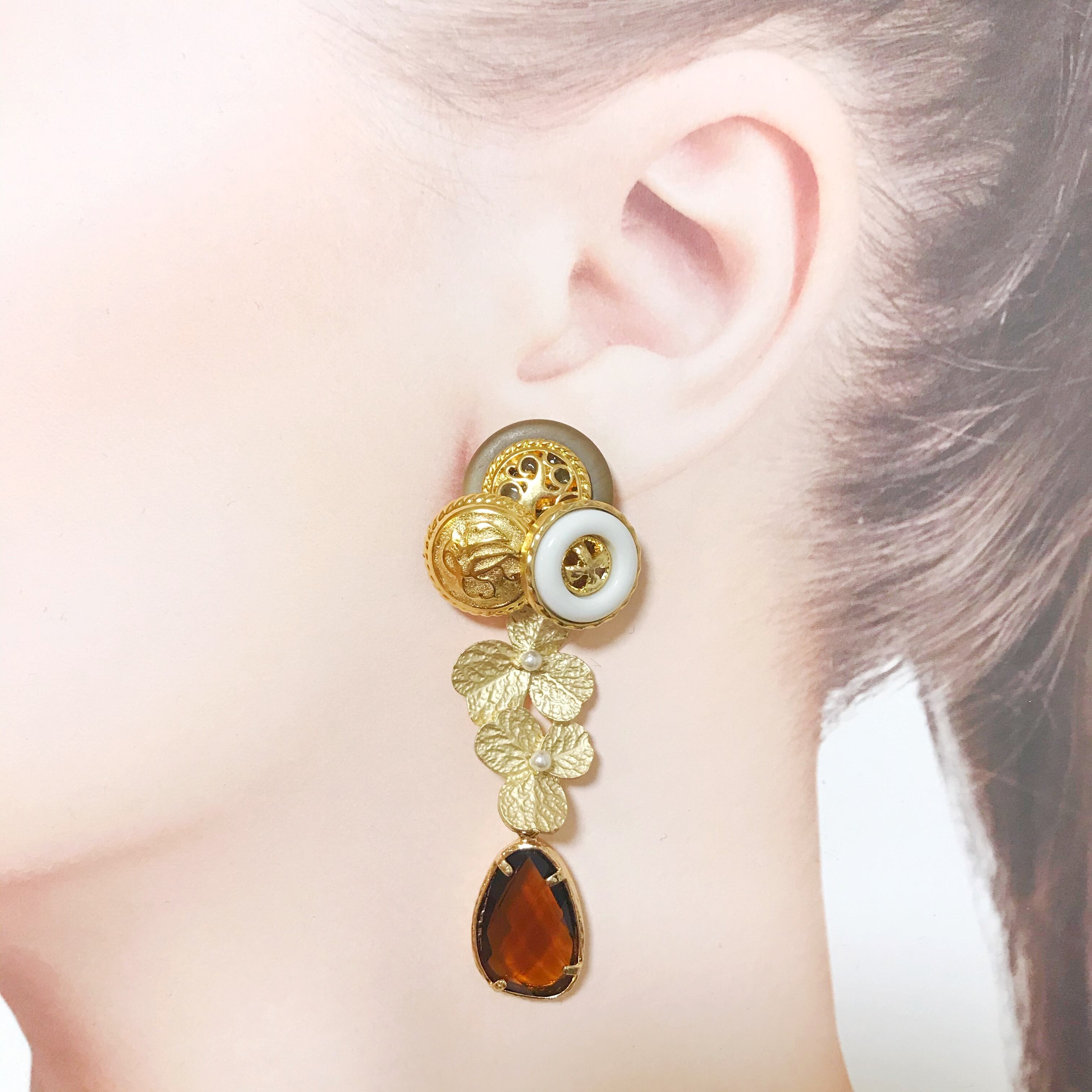 アシメントリーボタン×フラワーpierce/earring⌄̈⃝❤︎