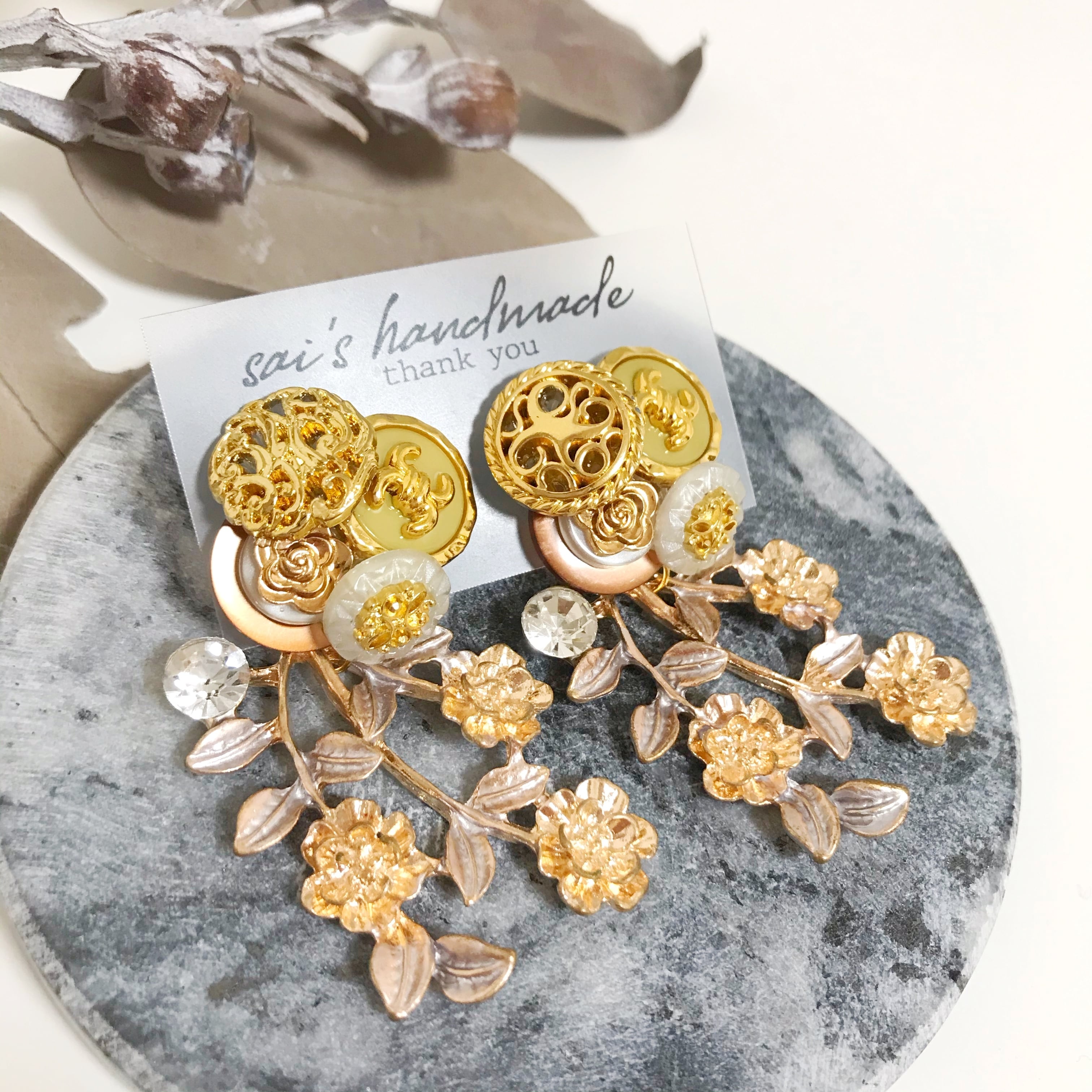 重ねボタン×大ぶりフラワー:*:・