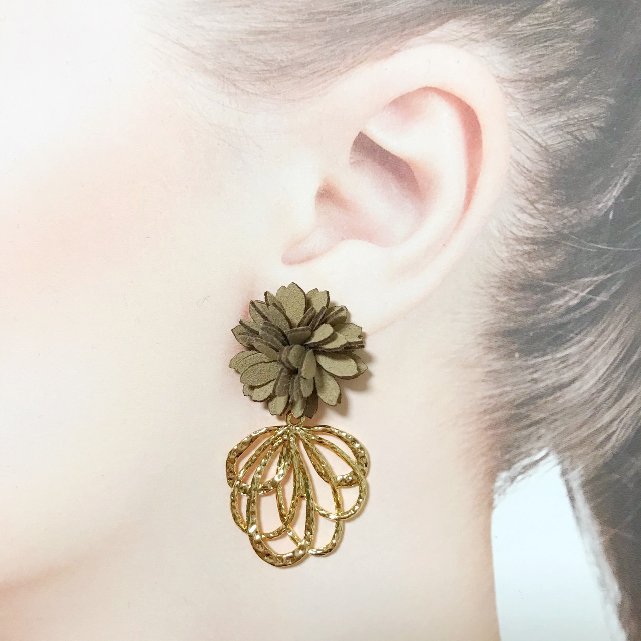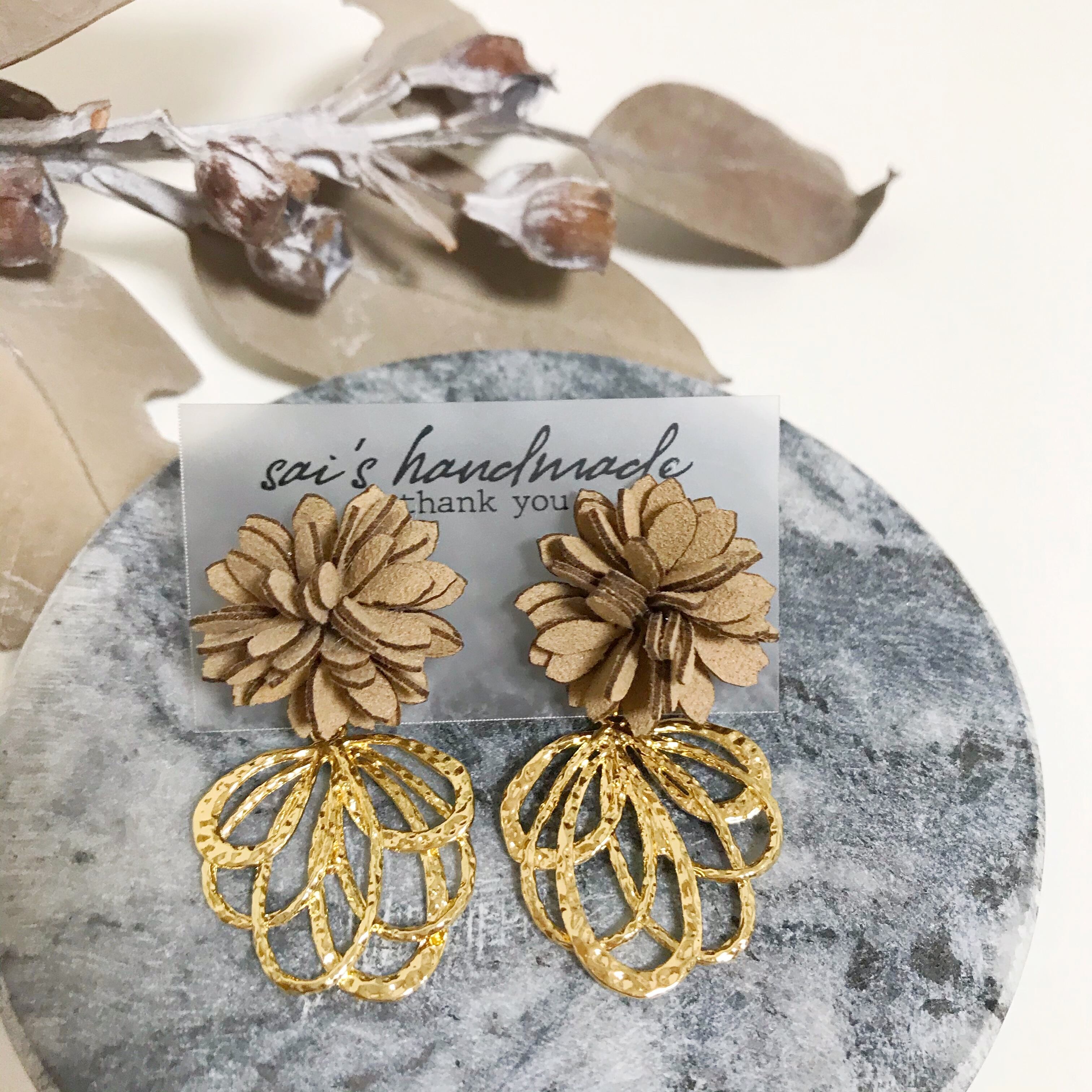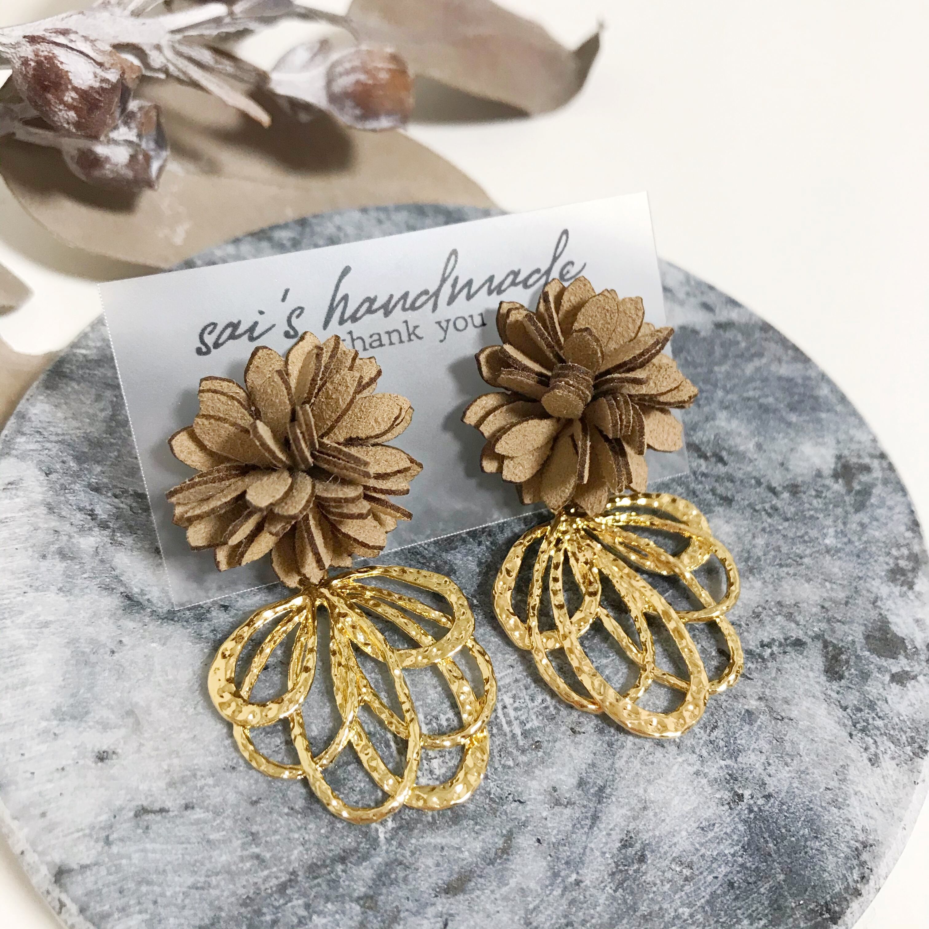 スエード×ゴールドのフラワーpierce/earring:*:・
