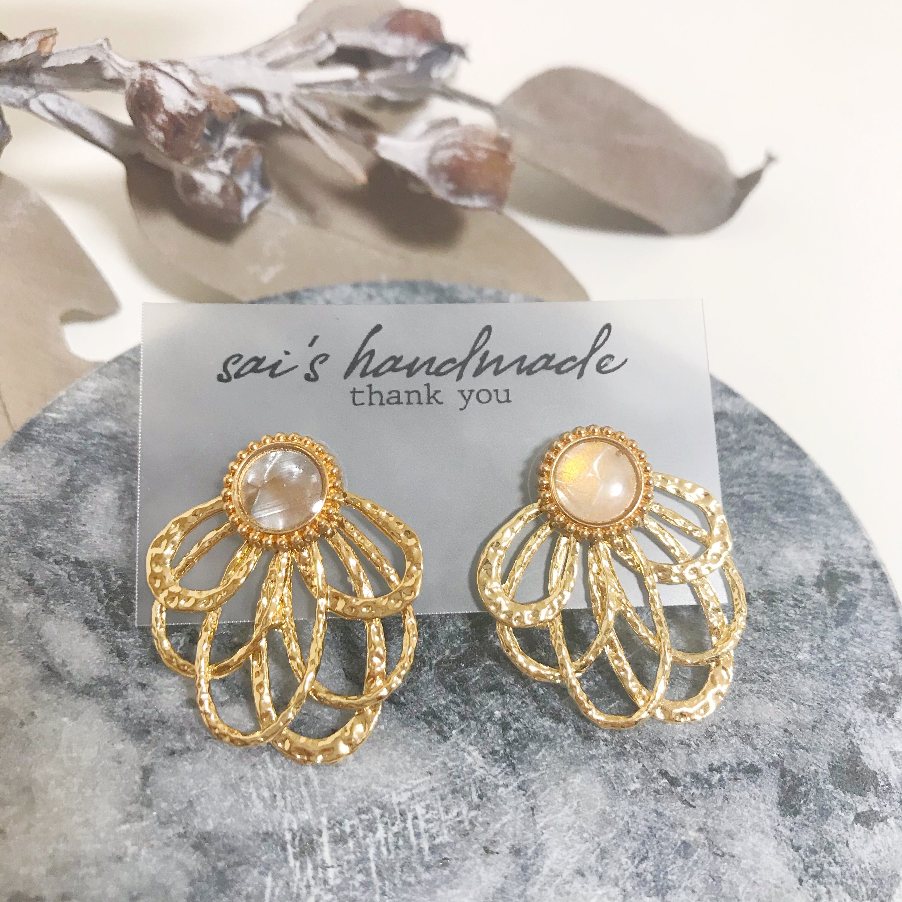 シェル風ボタン×ゴールドフラワー:*:・