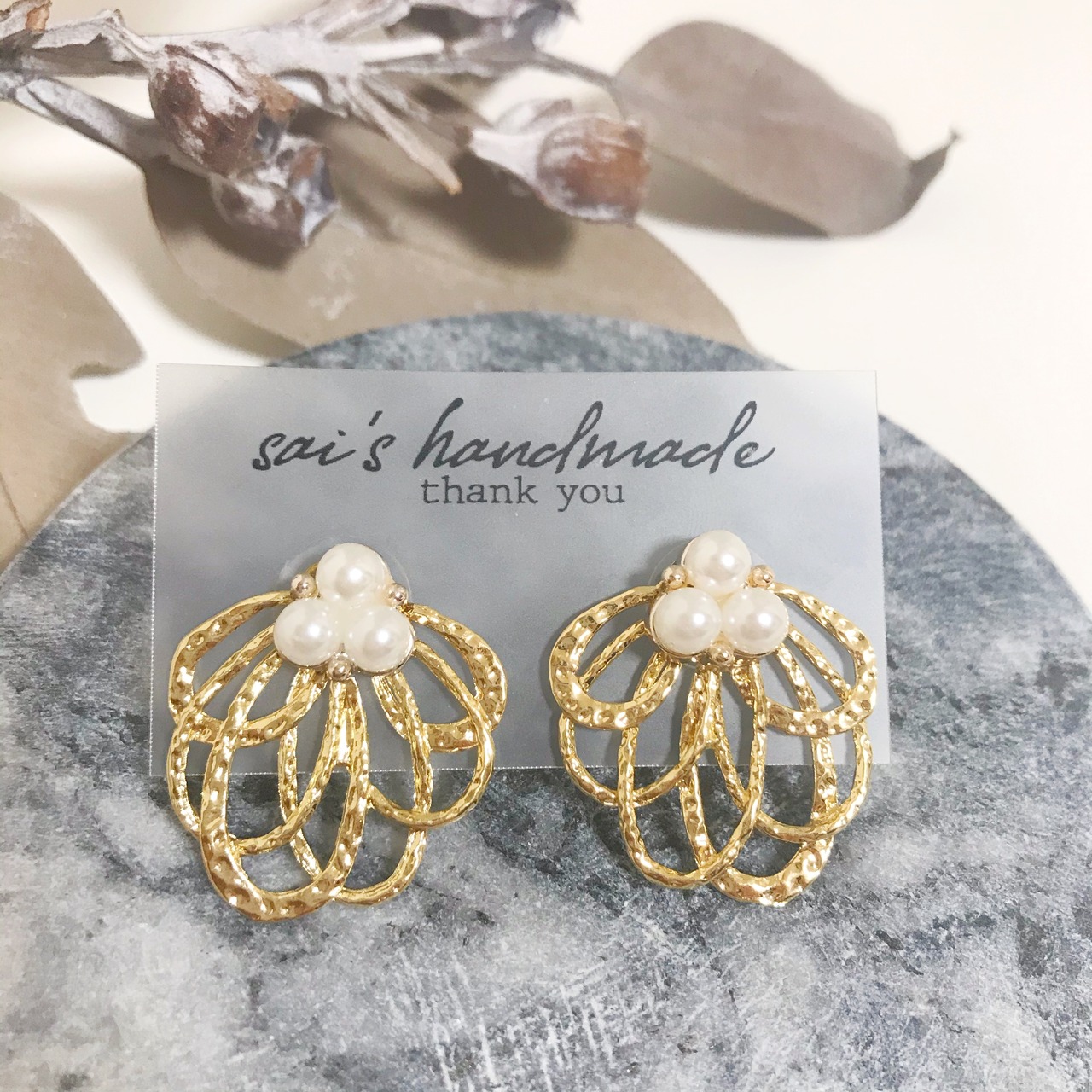 パールボタン×ゴールドフラワー:*:・