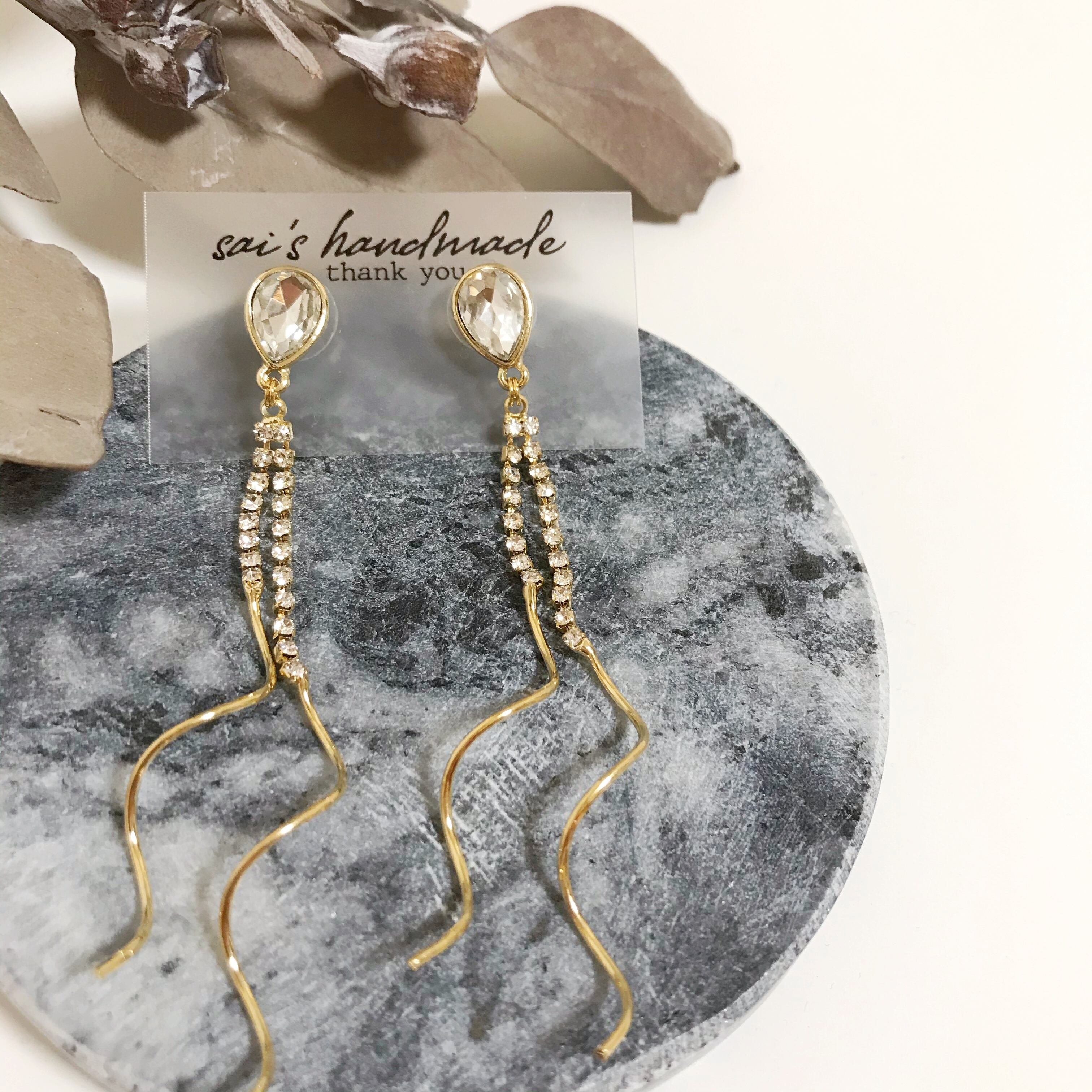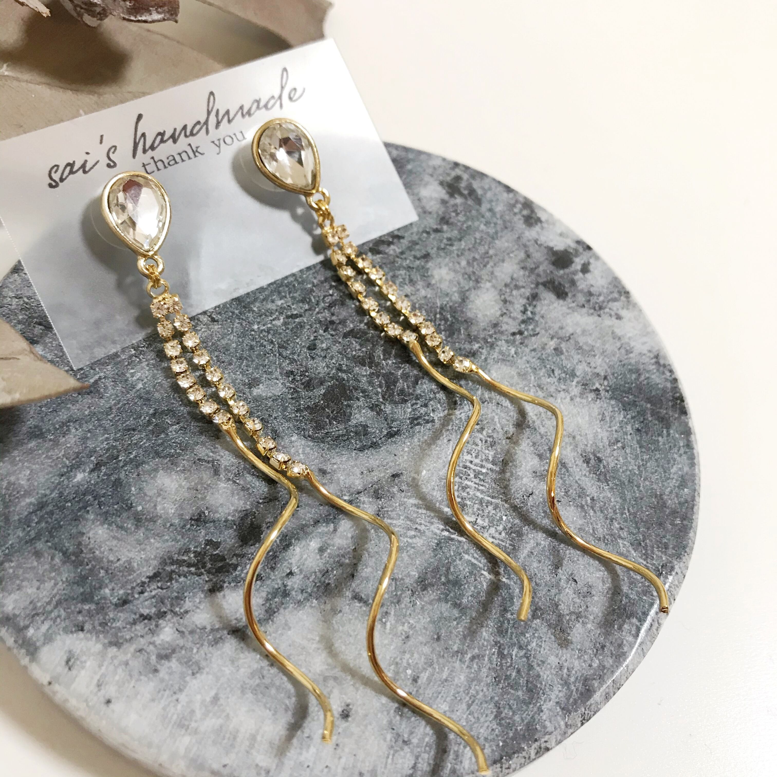 ガラス×揺れるロングチャーム:*:・