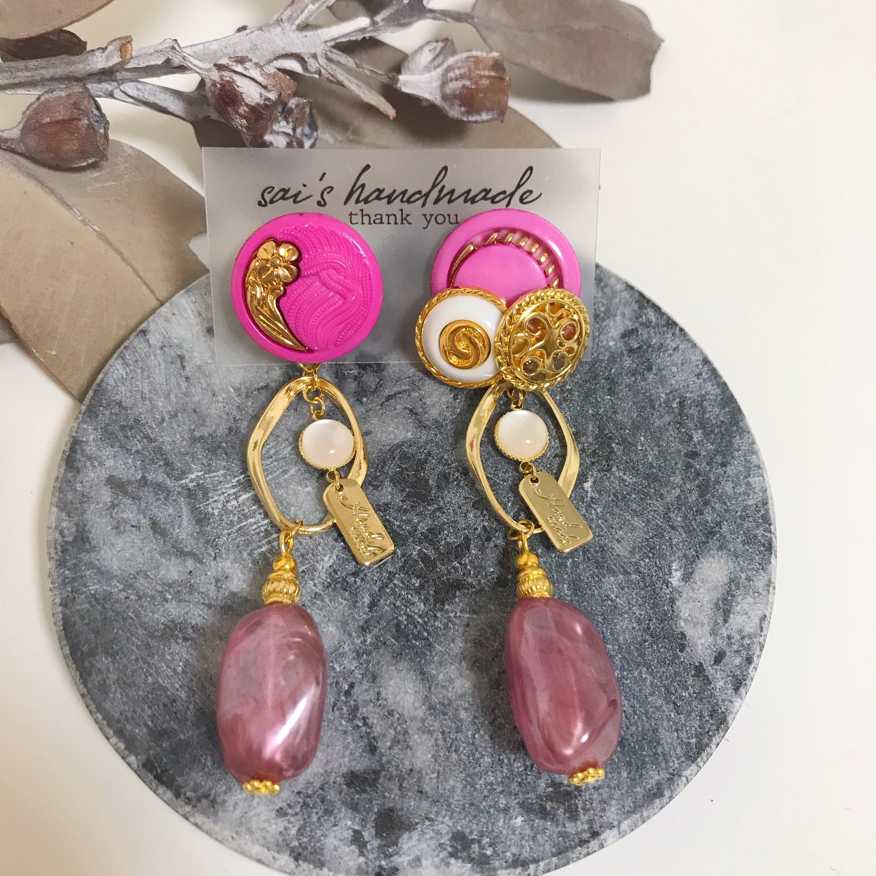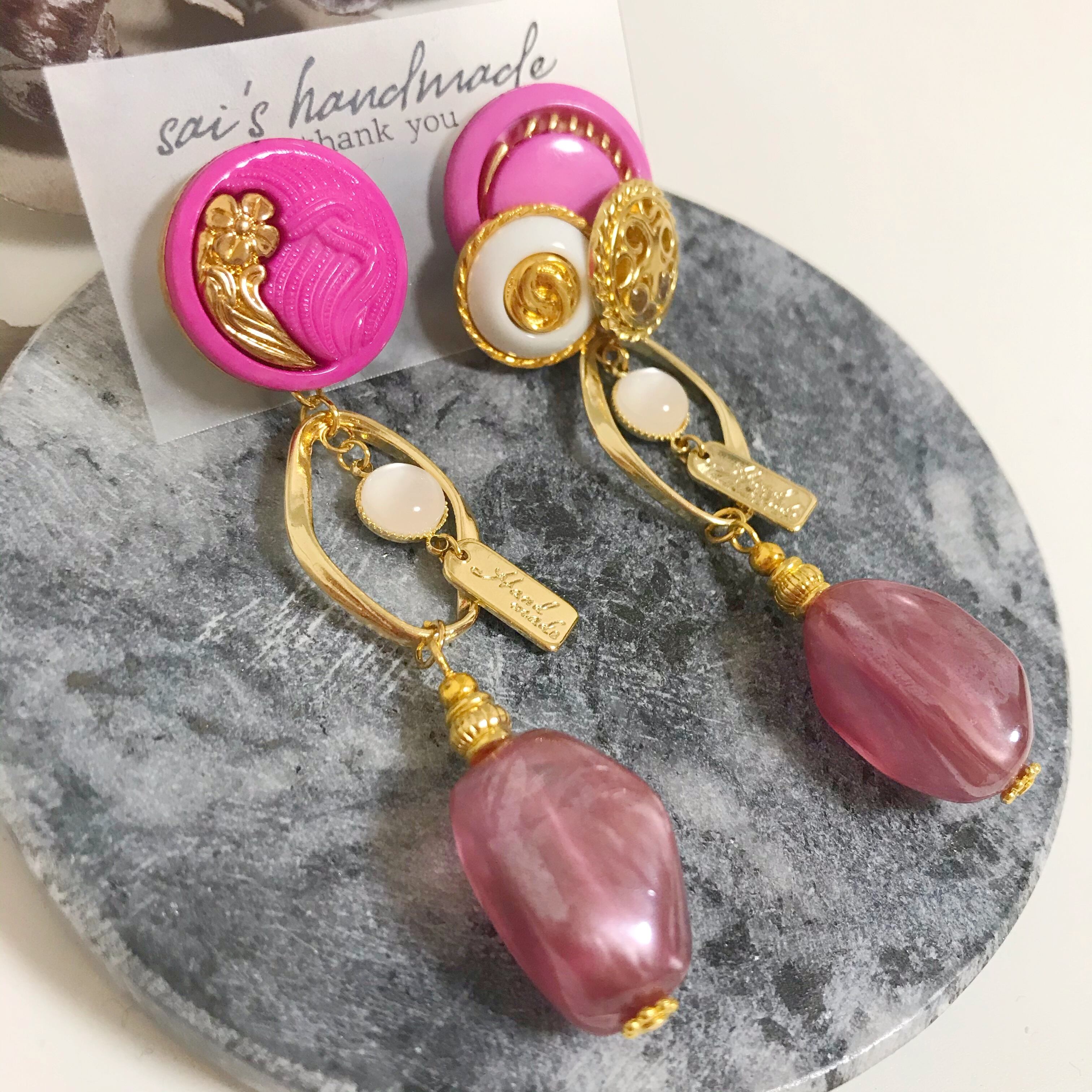 ピンク系ボタンアシメントリーpierce/earring:*:・