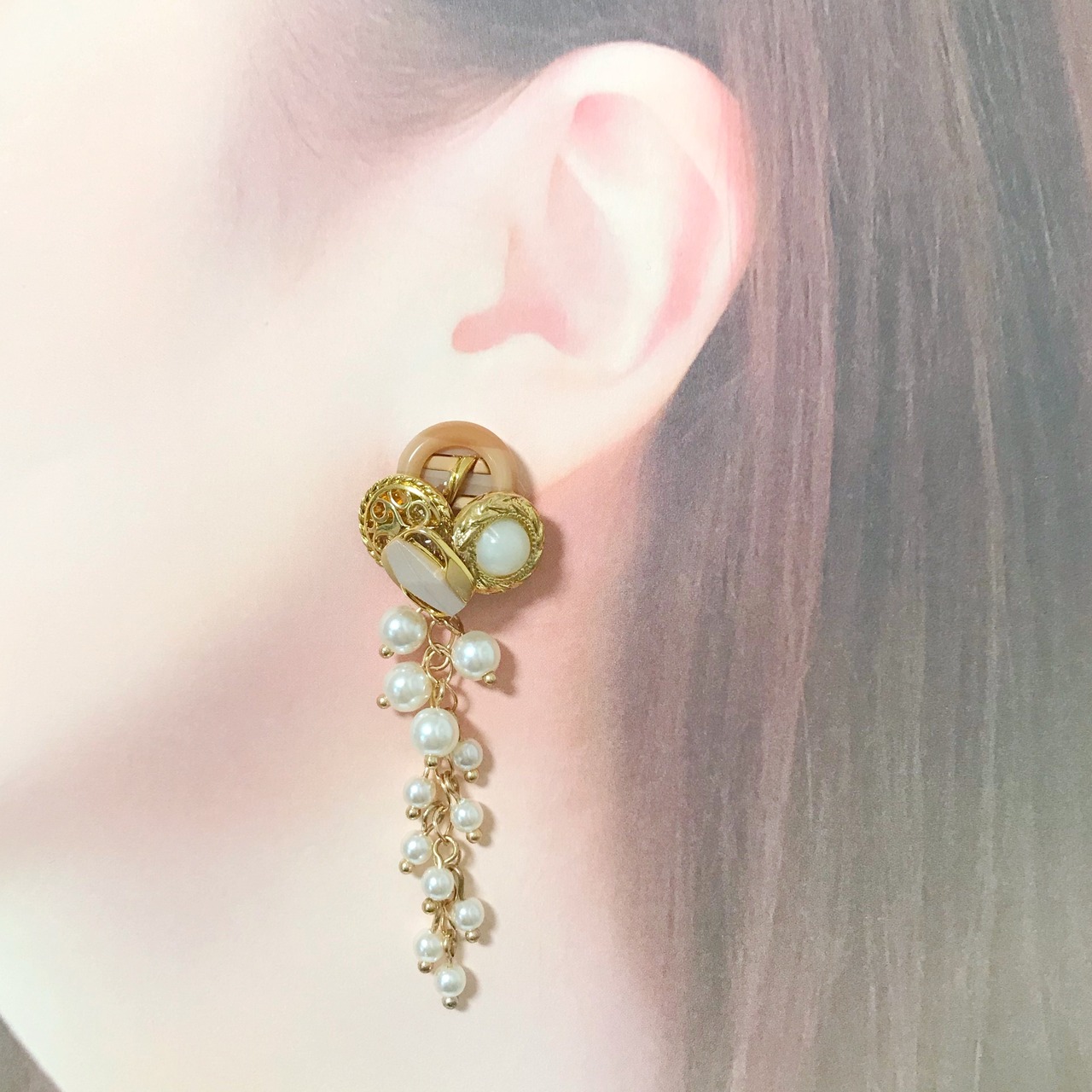 重ねボタン×じゃらじゃらパールpierce/earring .。.:*・゚