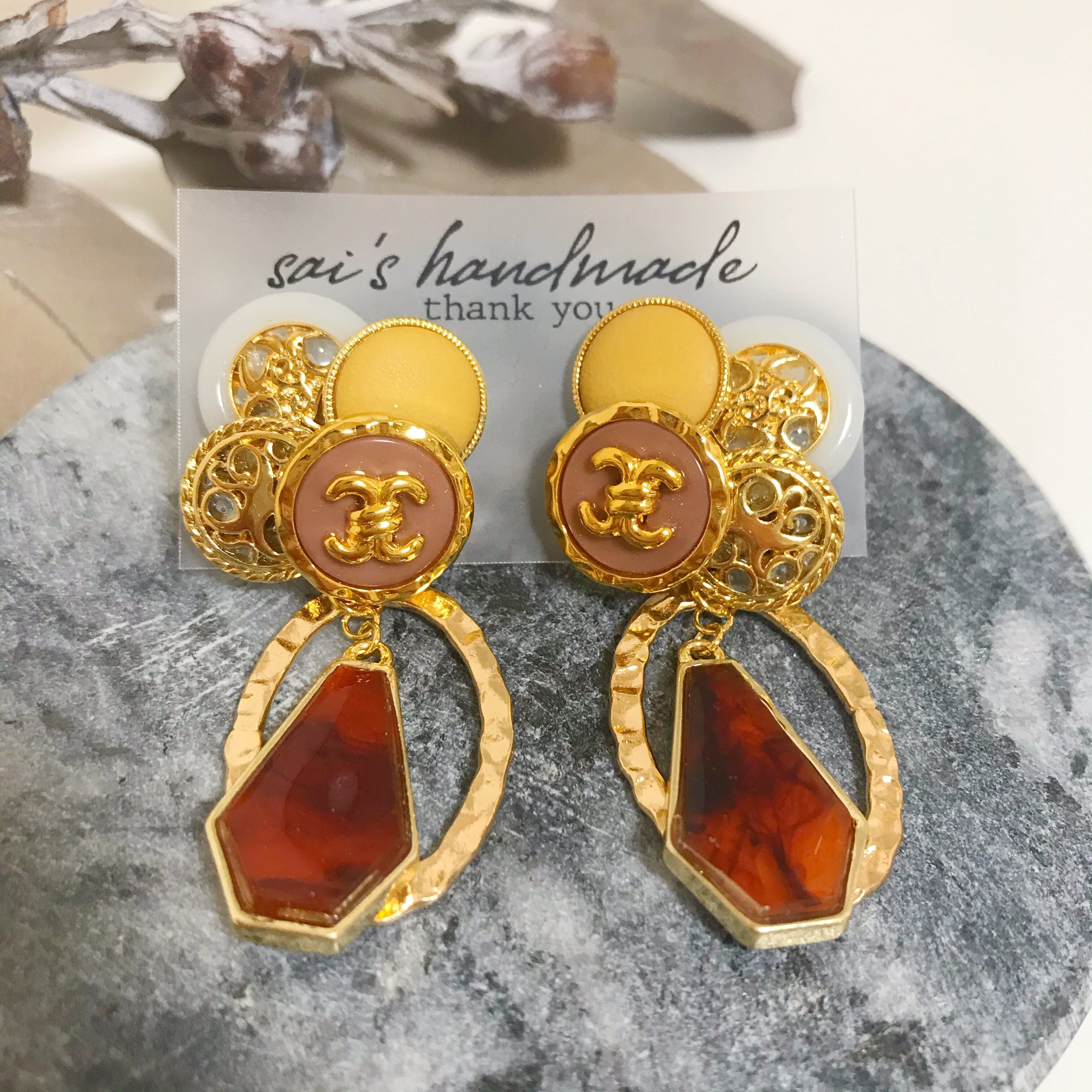 重ねボタン×べっ甲チャームpierce/earring .。.:*・゚