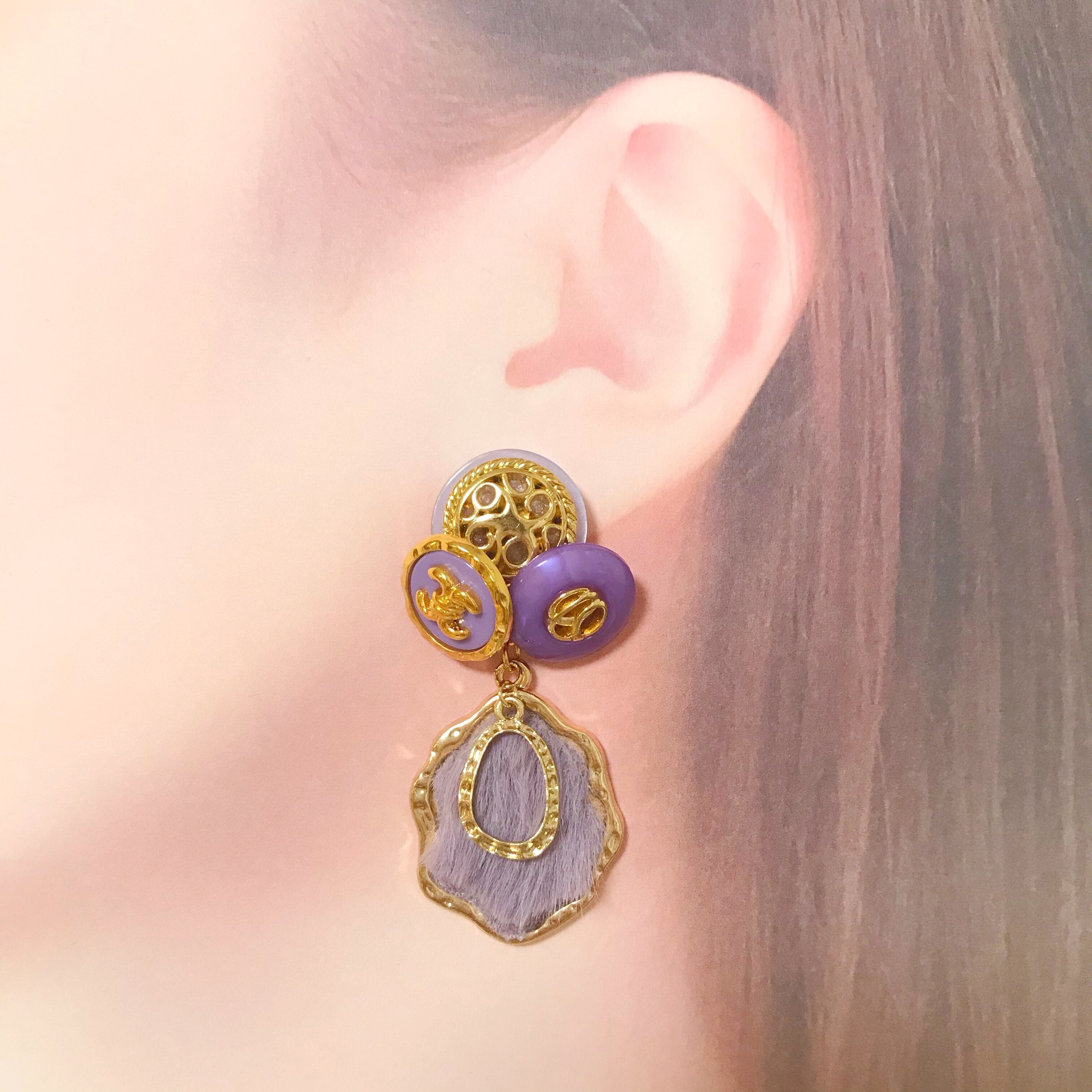 アシメントリーボタン×ファーチャームpierce/earring .。.:*・゚