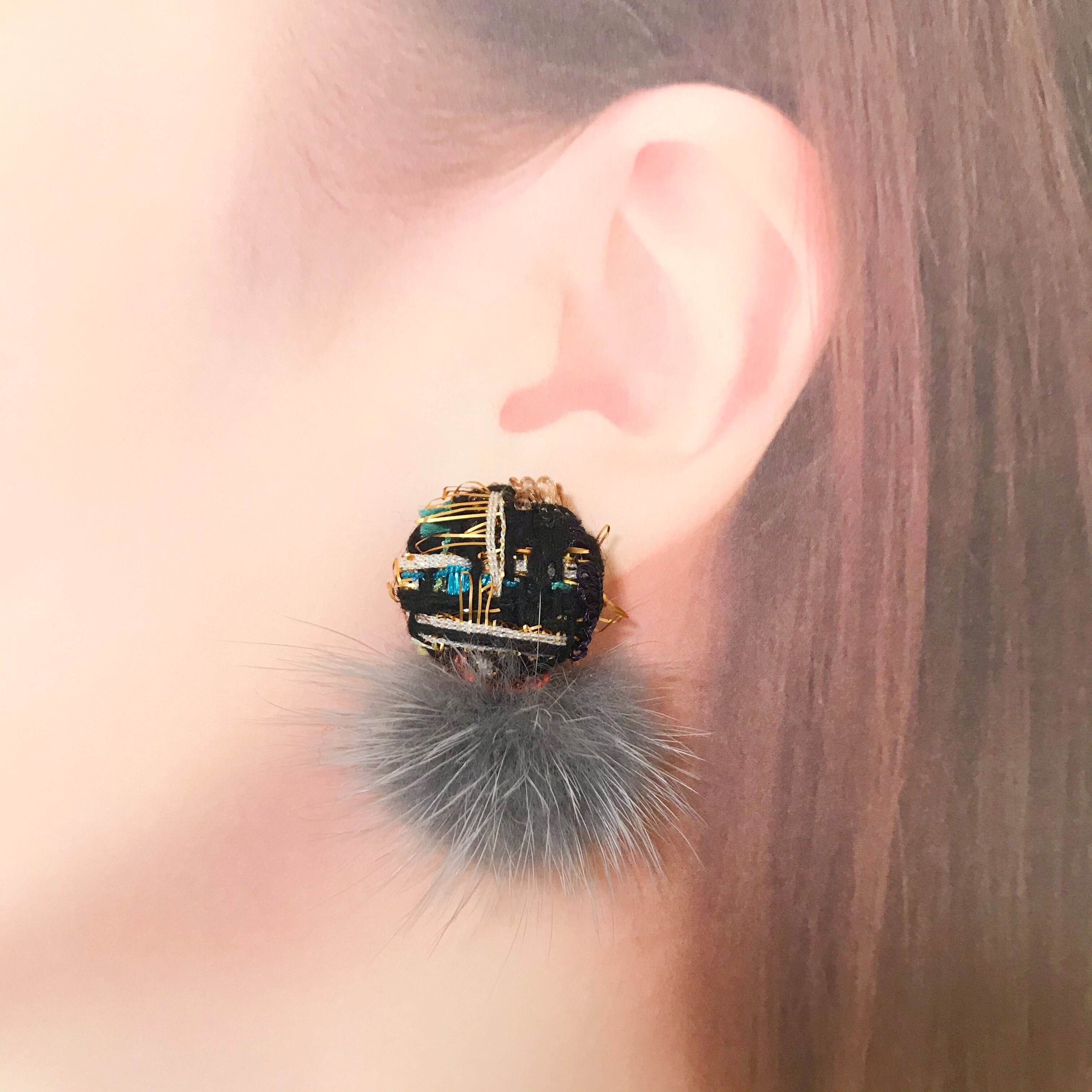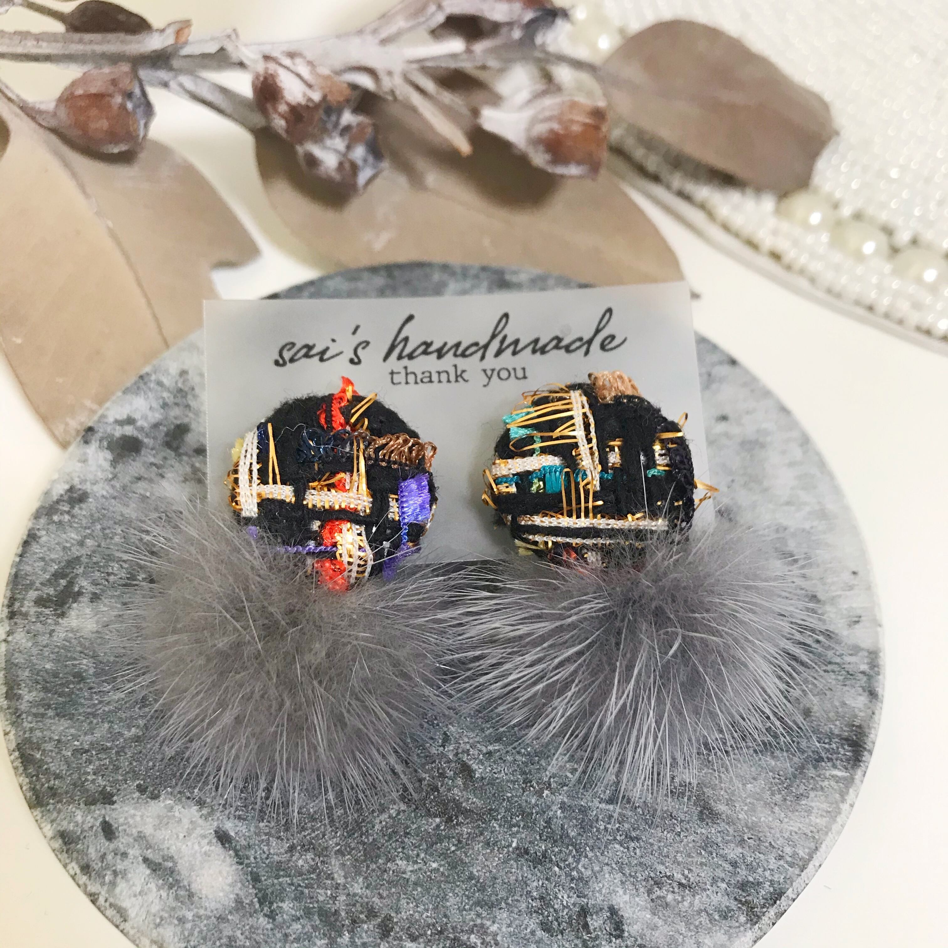 ツイード×ファーピアス:*:・