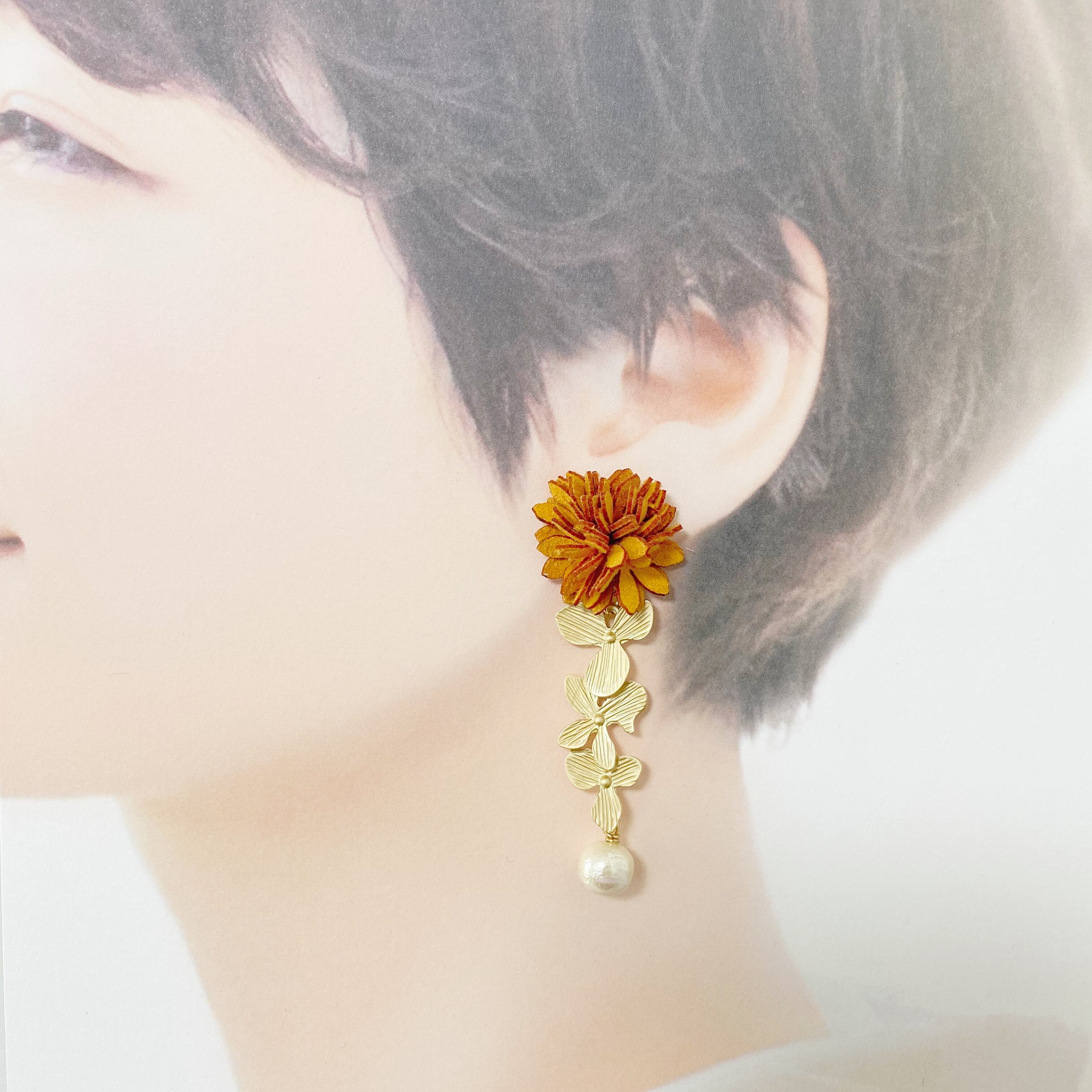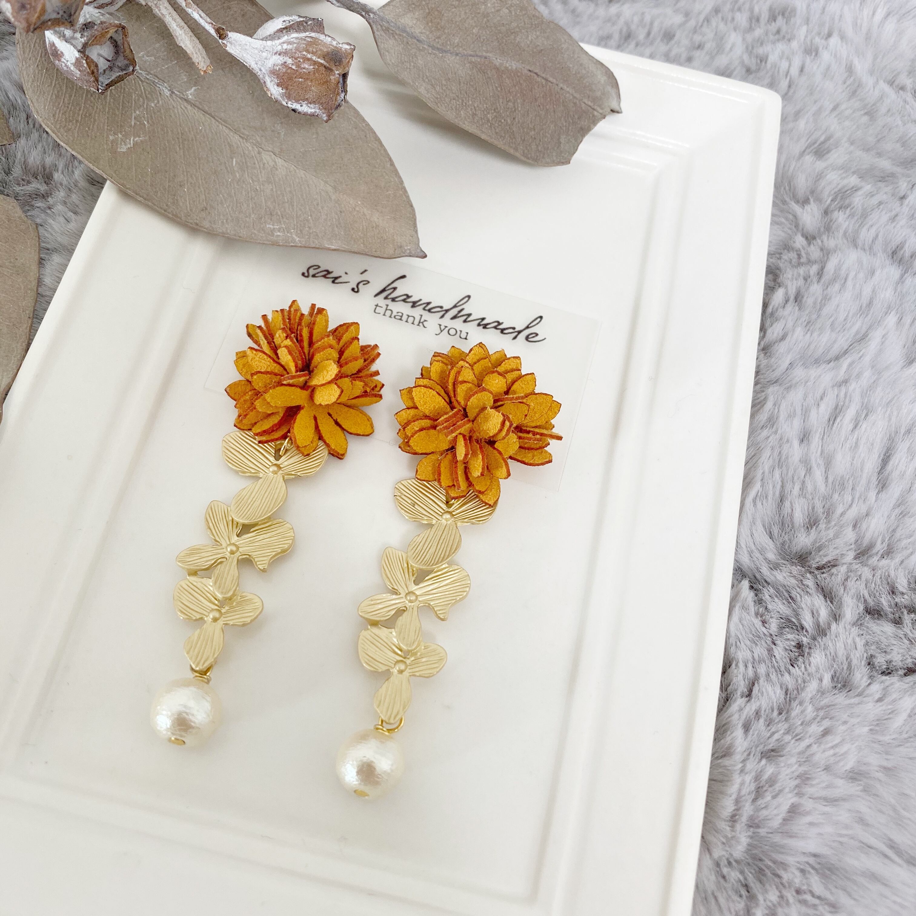 スエード×三連フラワー×パールpierce/earring:*:・