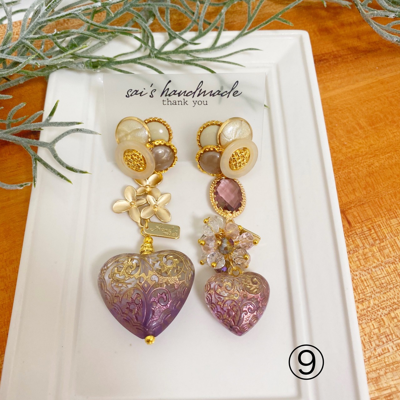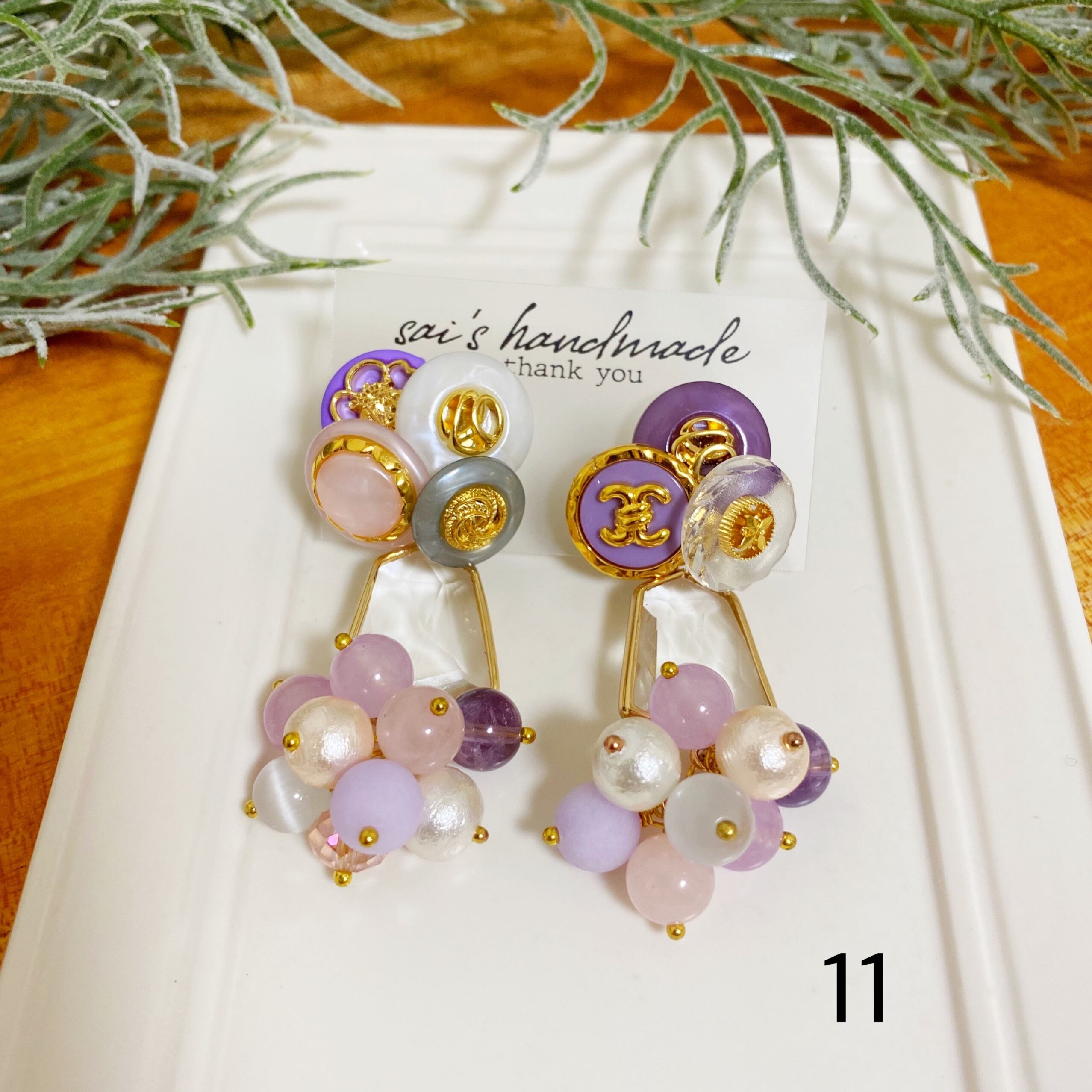 ⑦アシメントリーボタン×手染めビーズ 1300円