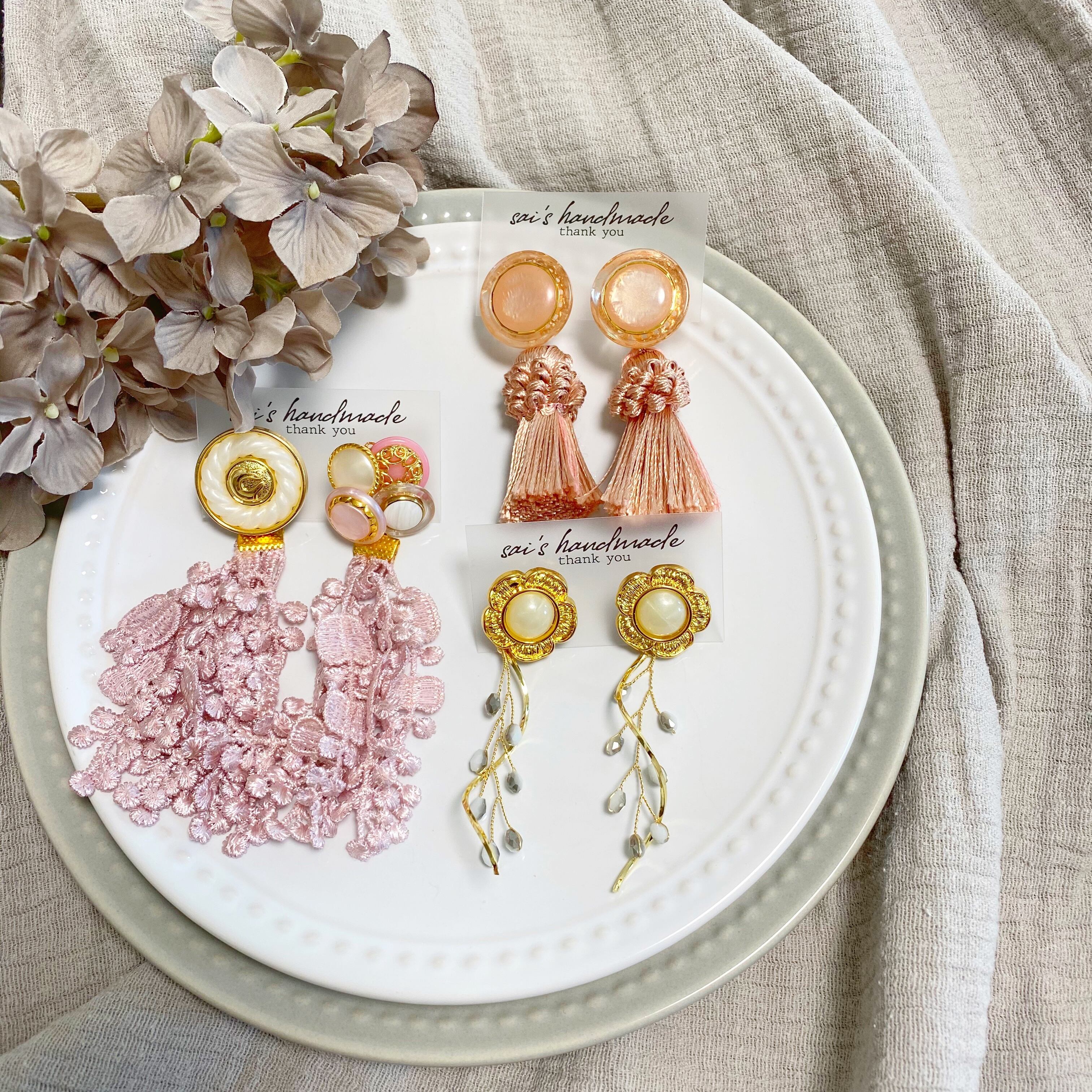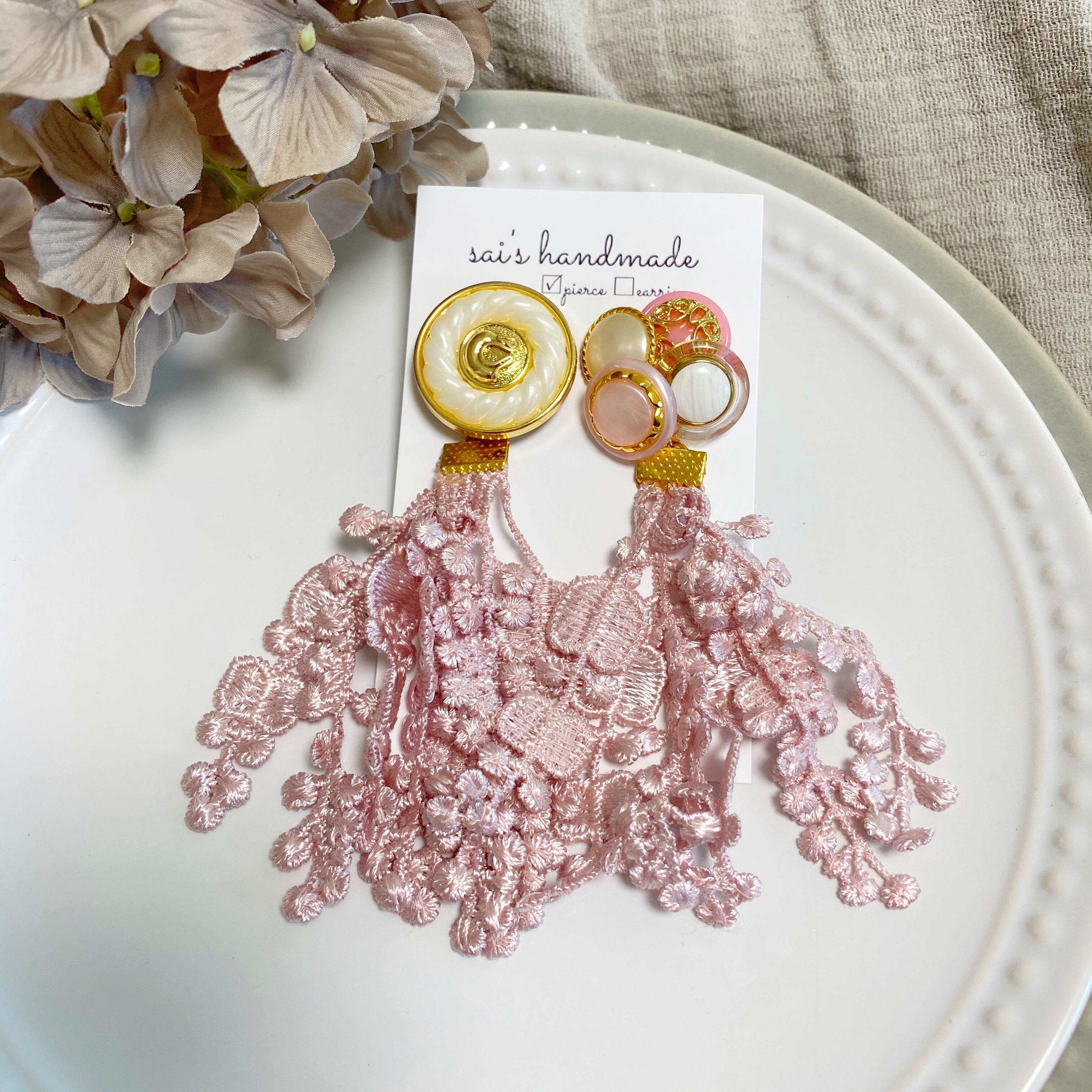 アシメントリーボタン×レースタッセル 1300円