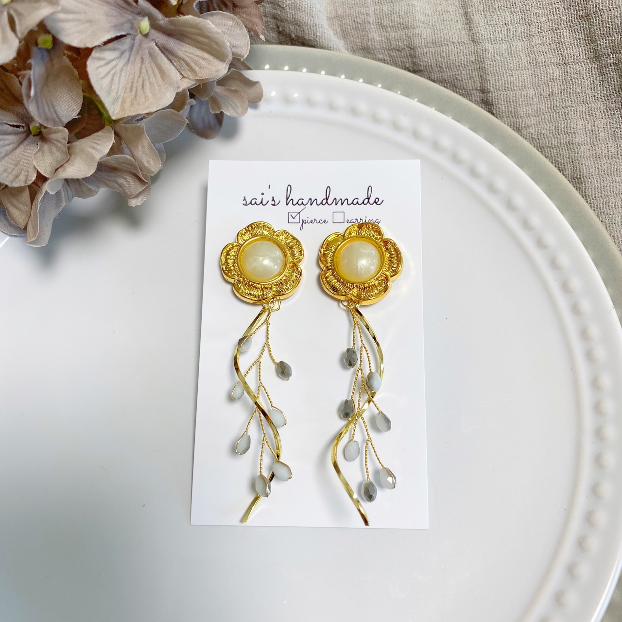 フラワーボタン×ワイヤービーズ 1200円