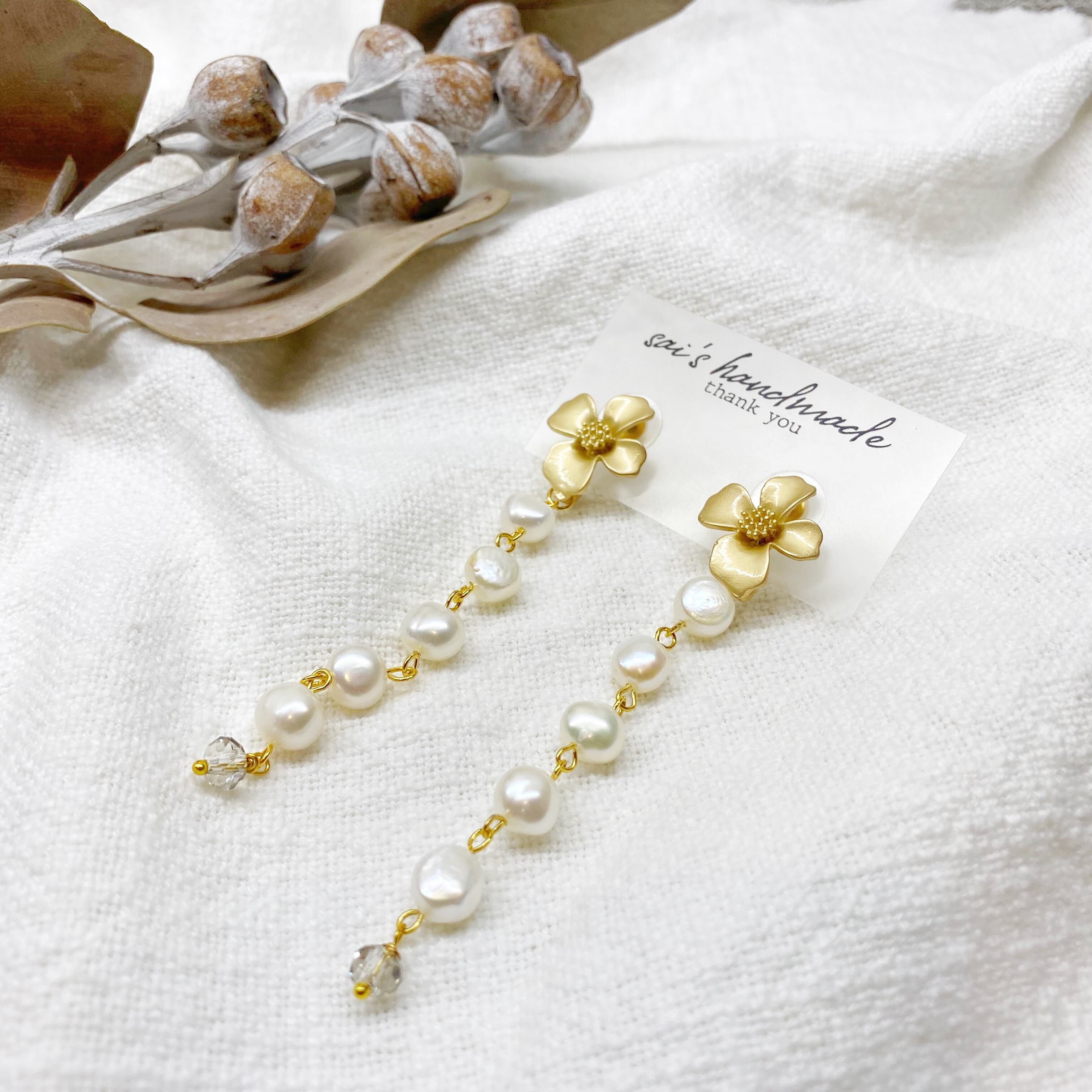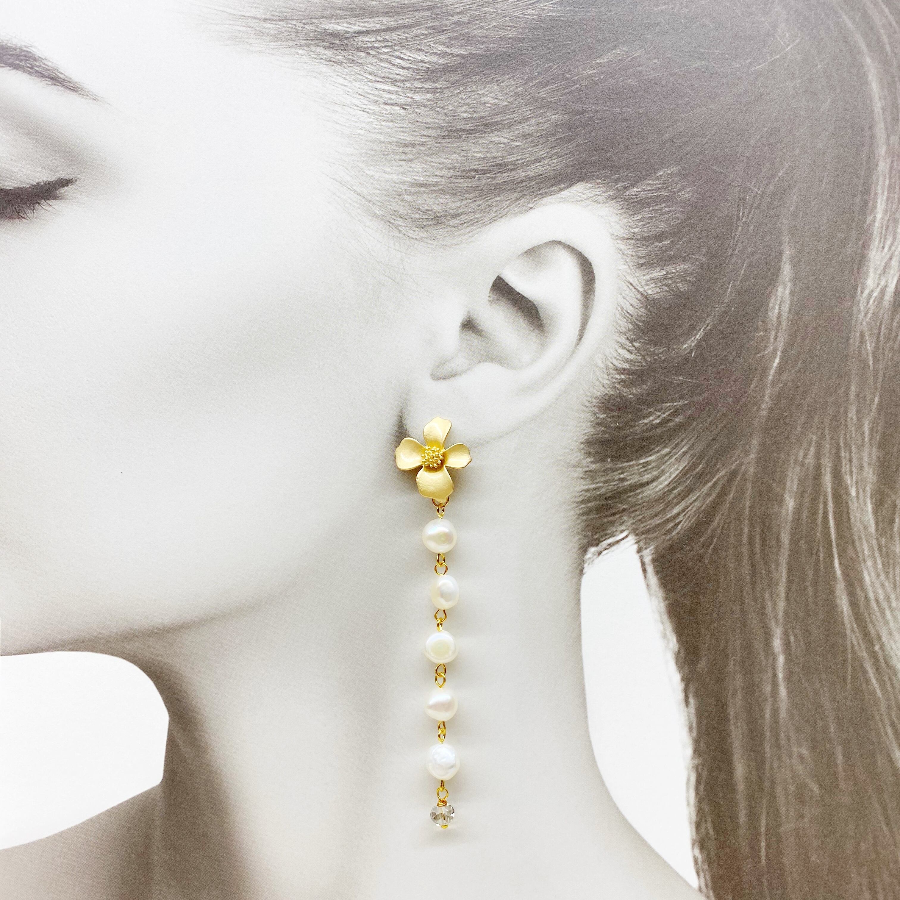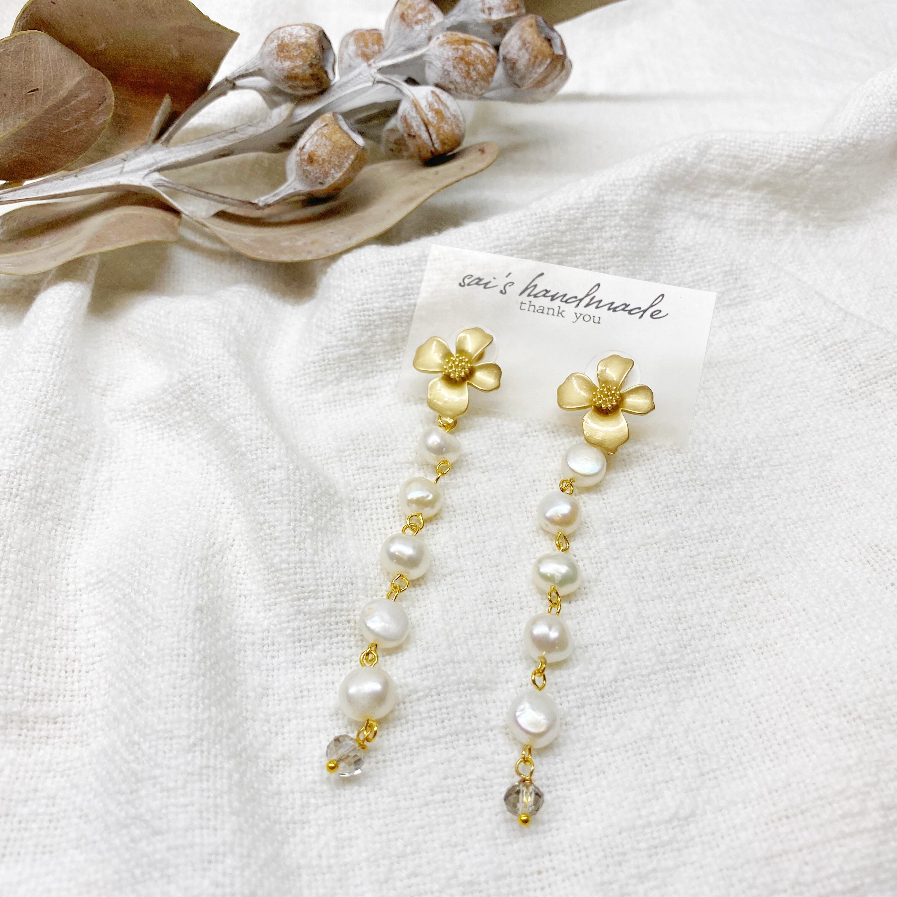 フラワー×ロング淡水パールピアス.৹♡