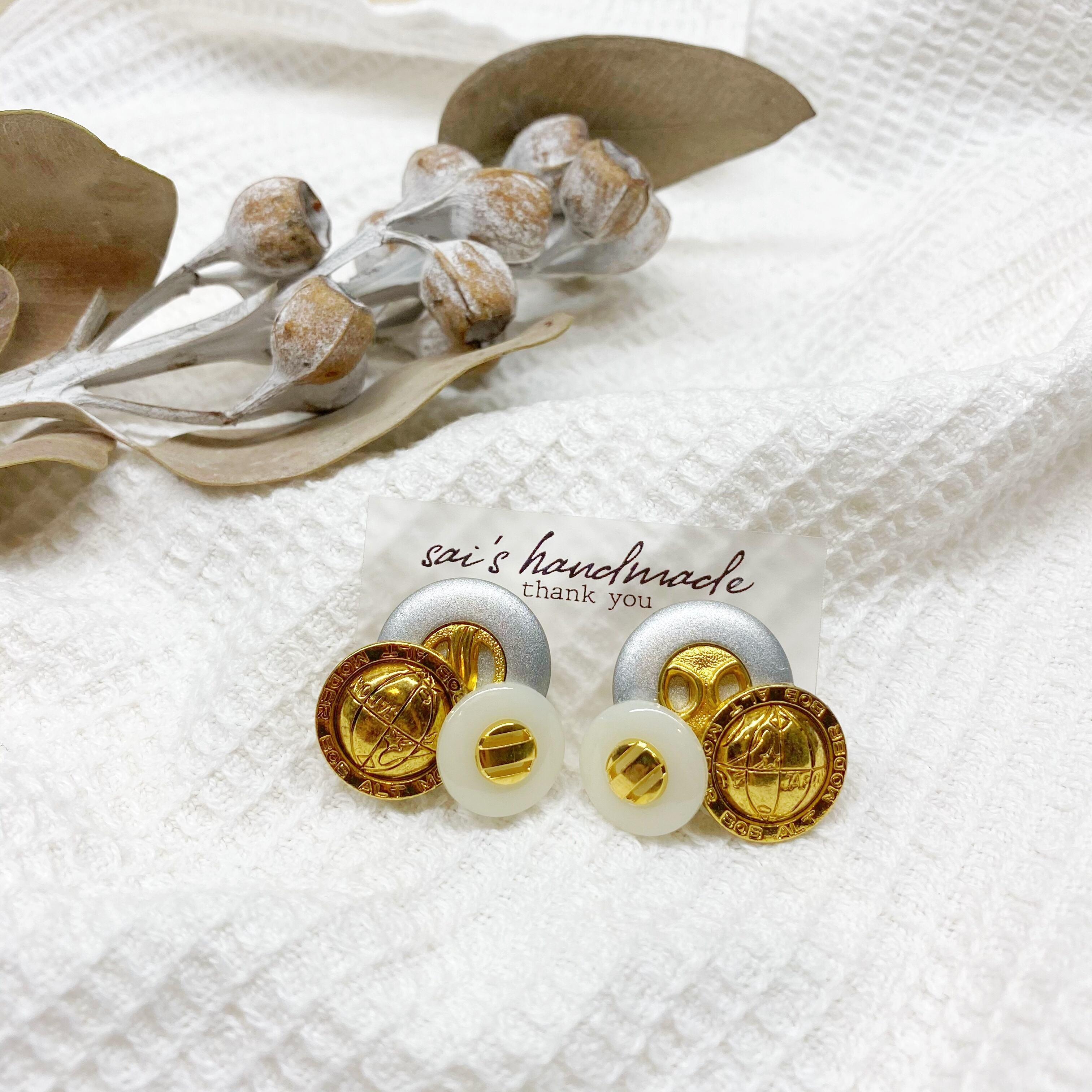 重ねボタンピアス