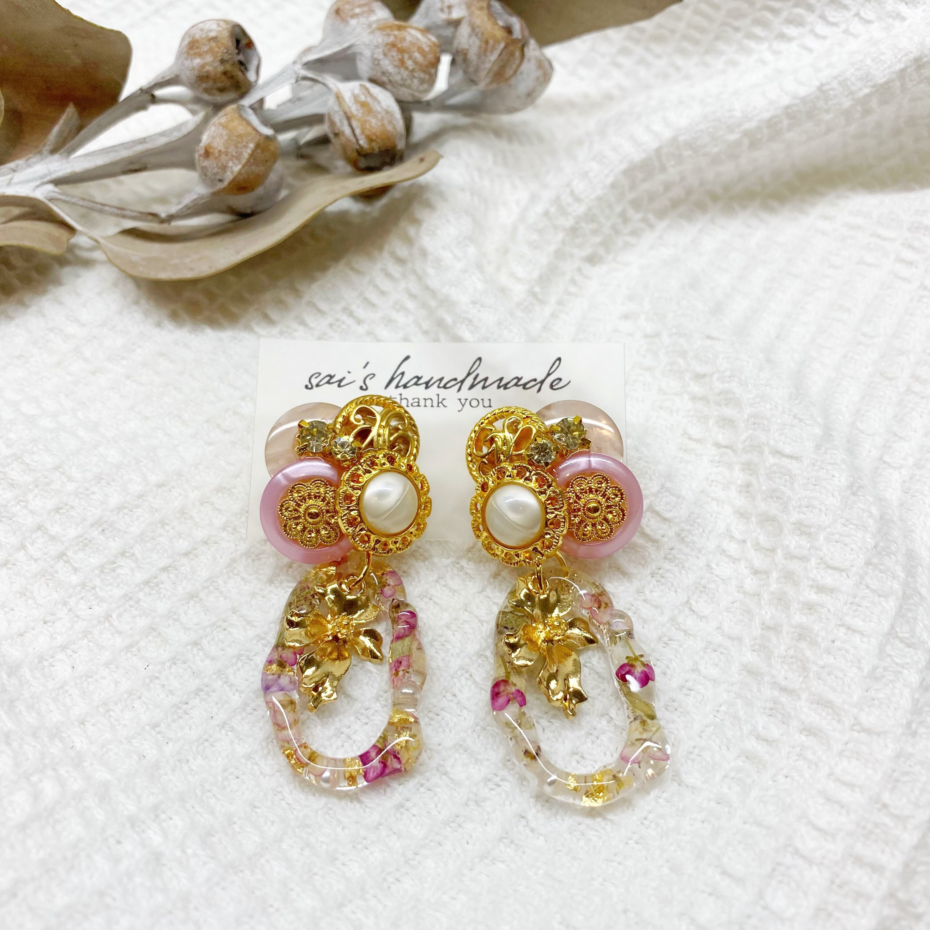 重ねボタン×ドライフラワーレジン♡ ˎˊ˗