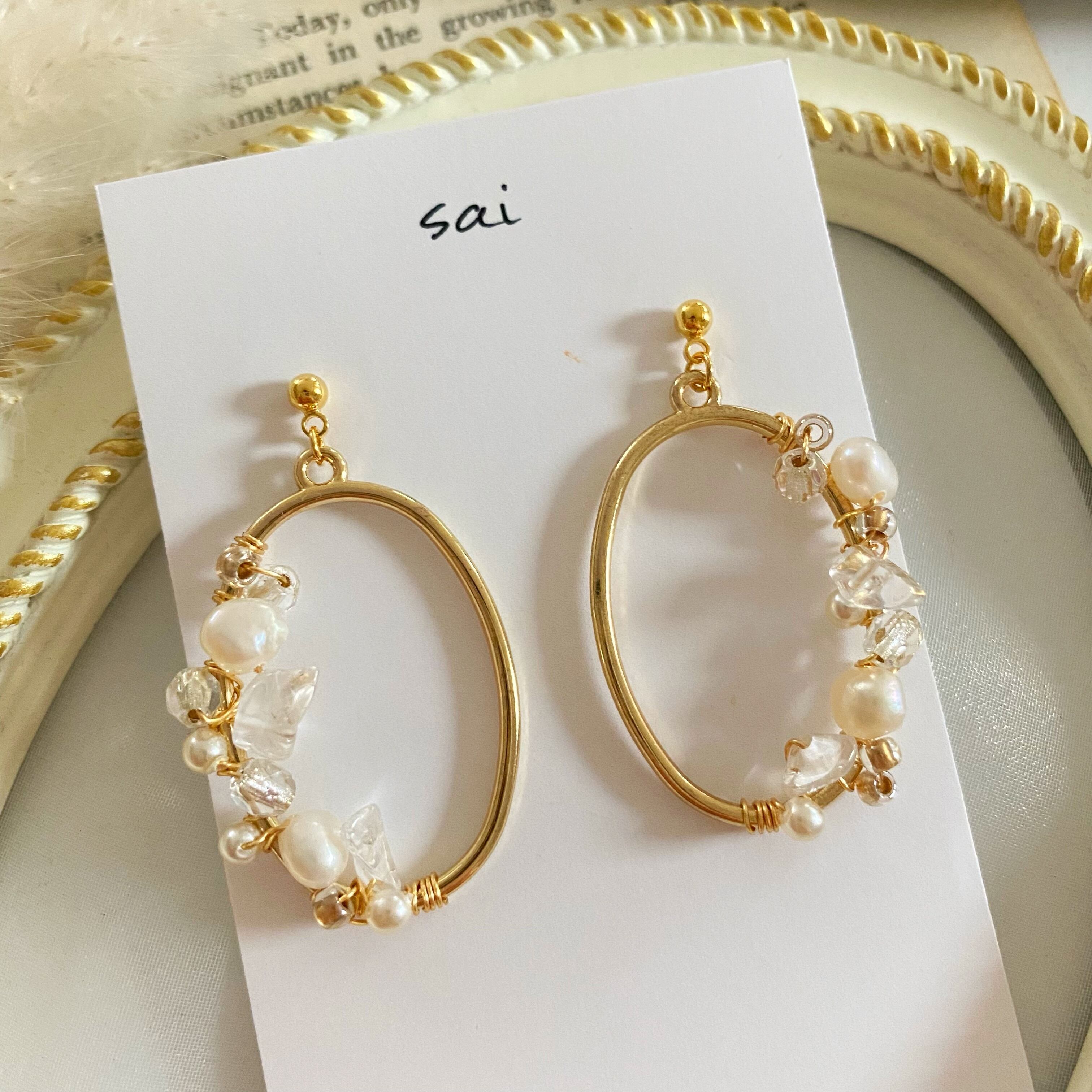 天然石クリスタルのさざれと淡水パールのシンプルなpierce/earringです( ⁎ᵕᴗᵕ⁎ )