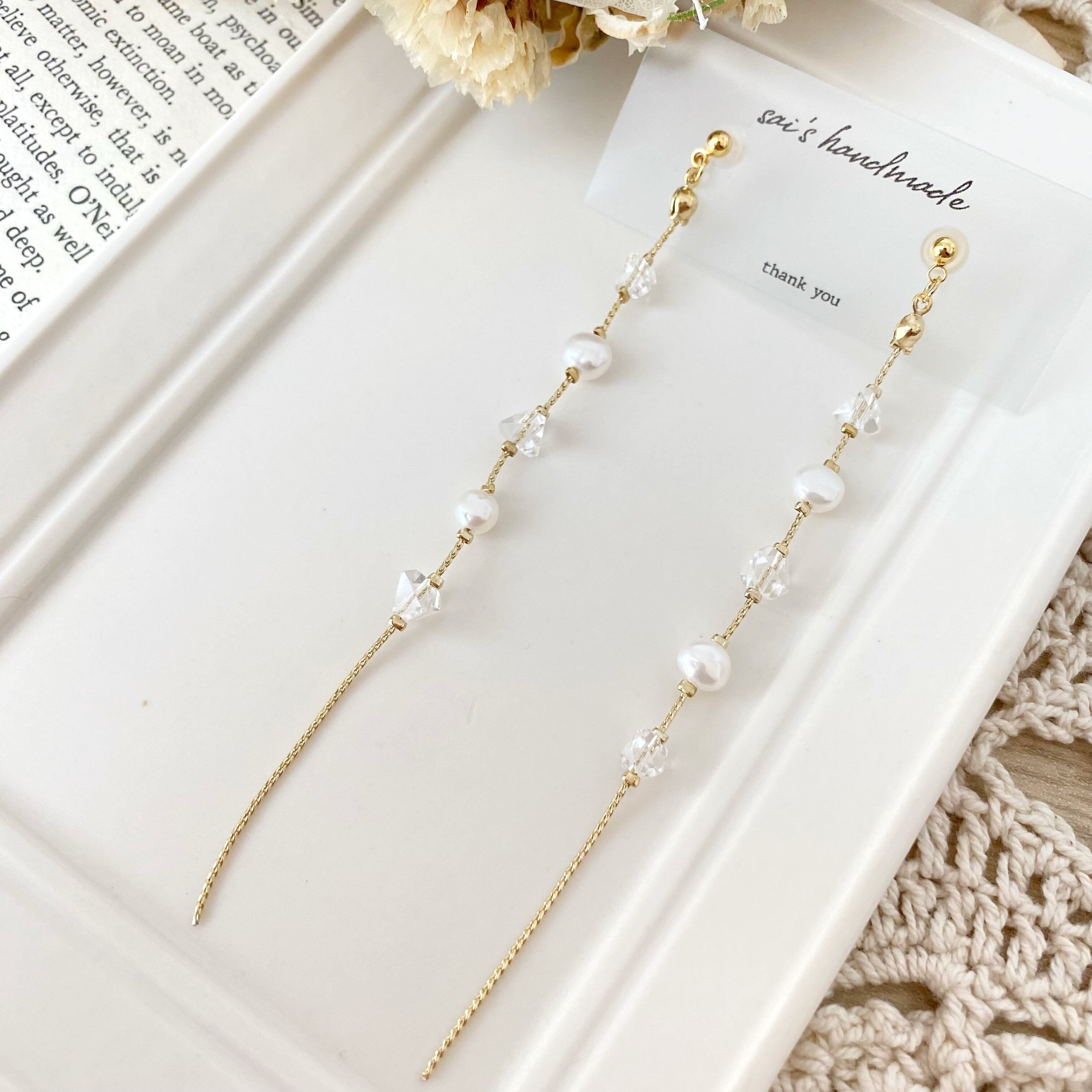 淡水パールとカットビーズの華奢なロングピアスです( ⁎ᵕᴗᵕ⁎ )