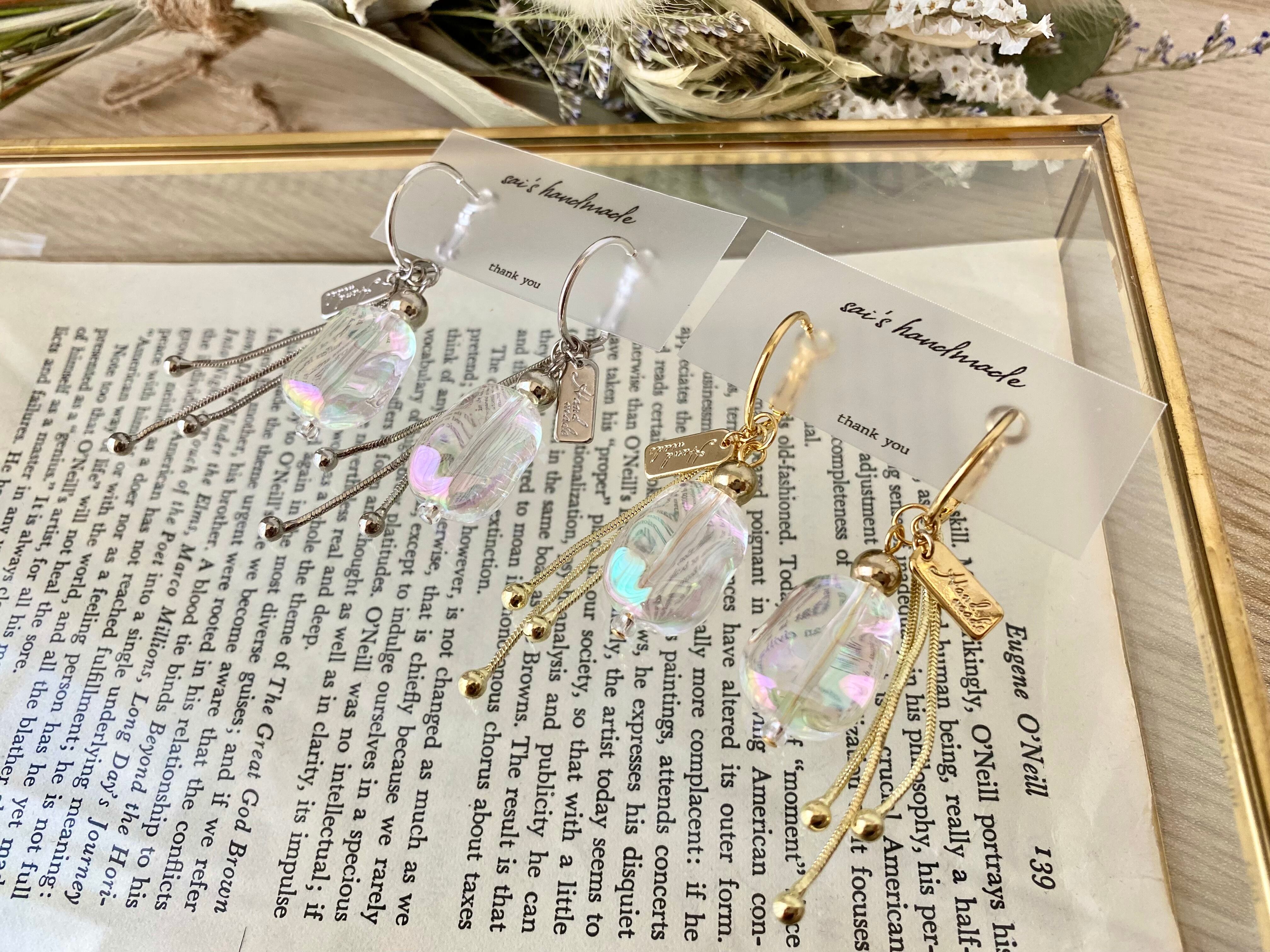 オーロラカラーのでこぼこビーズがかわいいフープピアス⸝⸝⸝ ✧︎