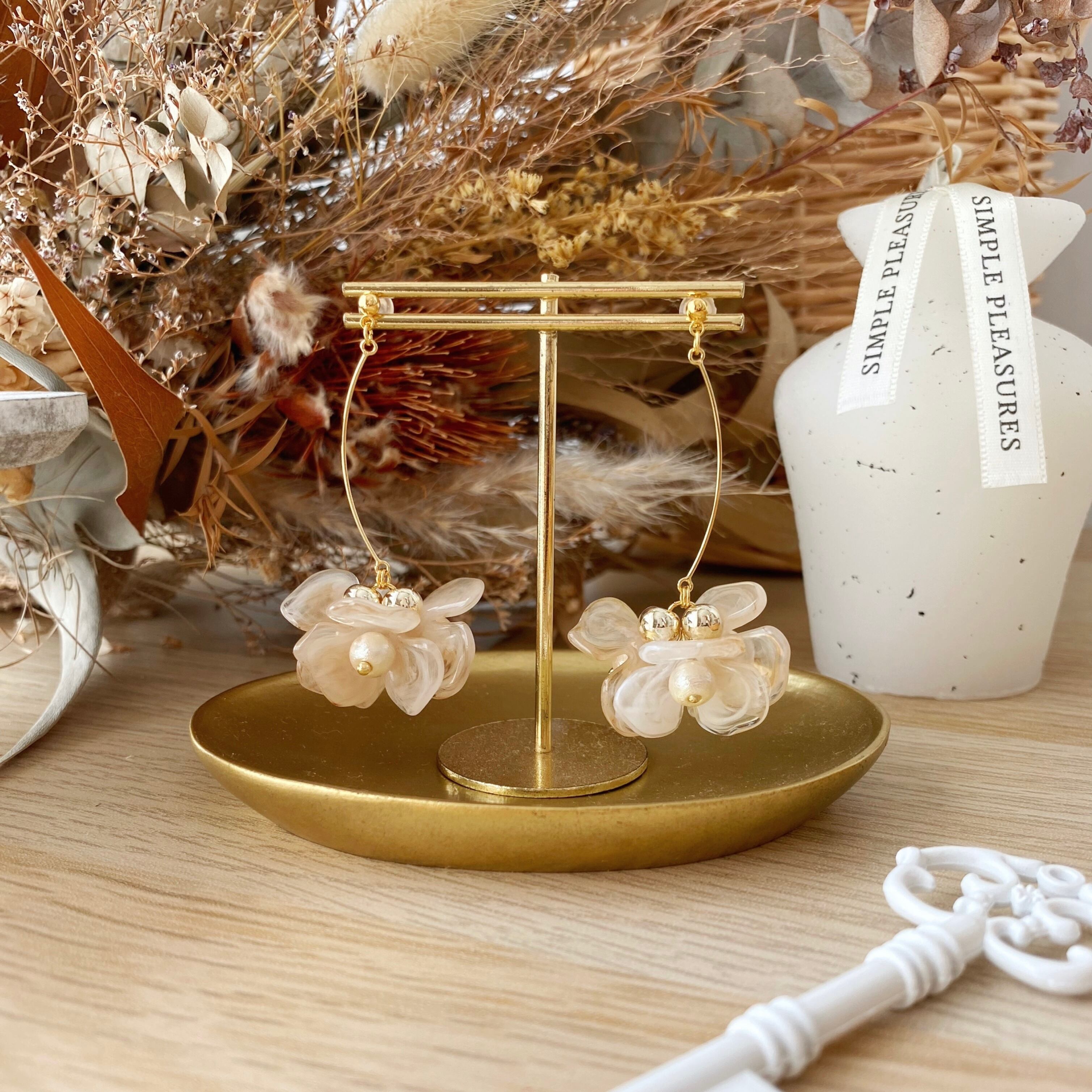 no.773クリアマーブルのフラワーピアス