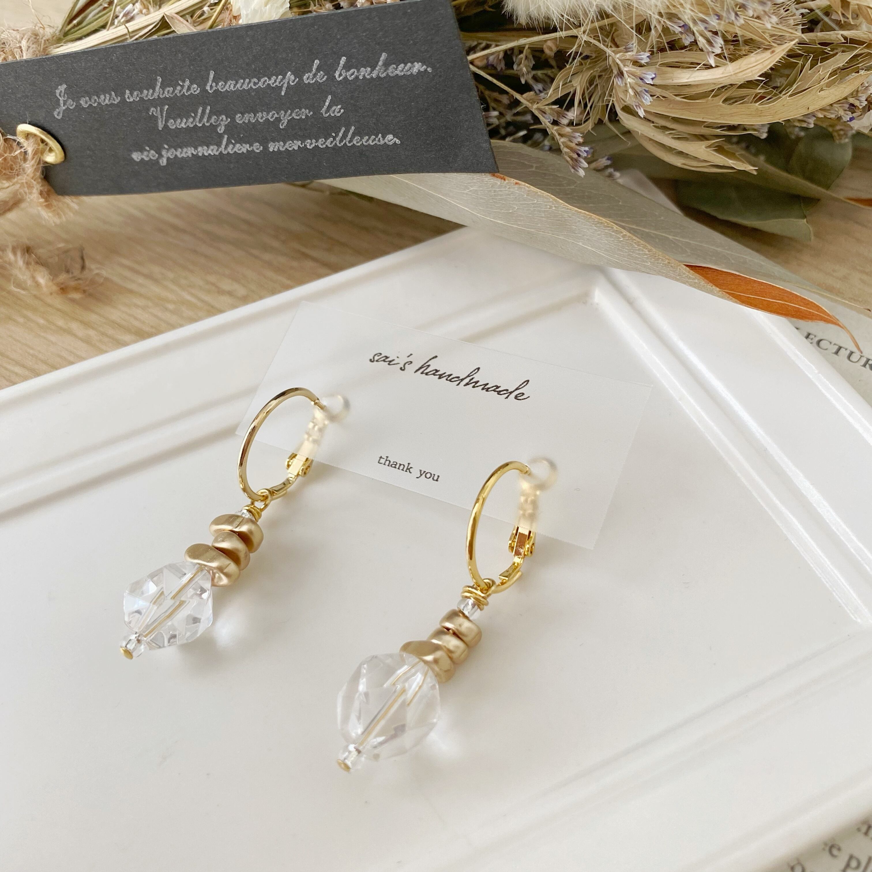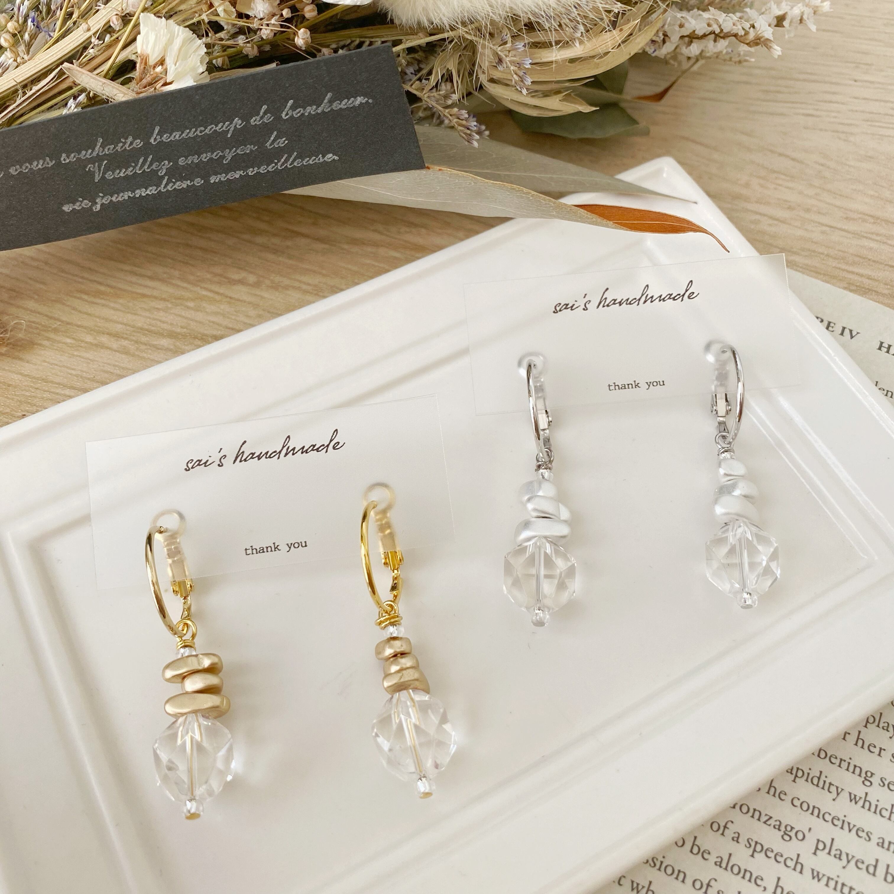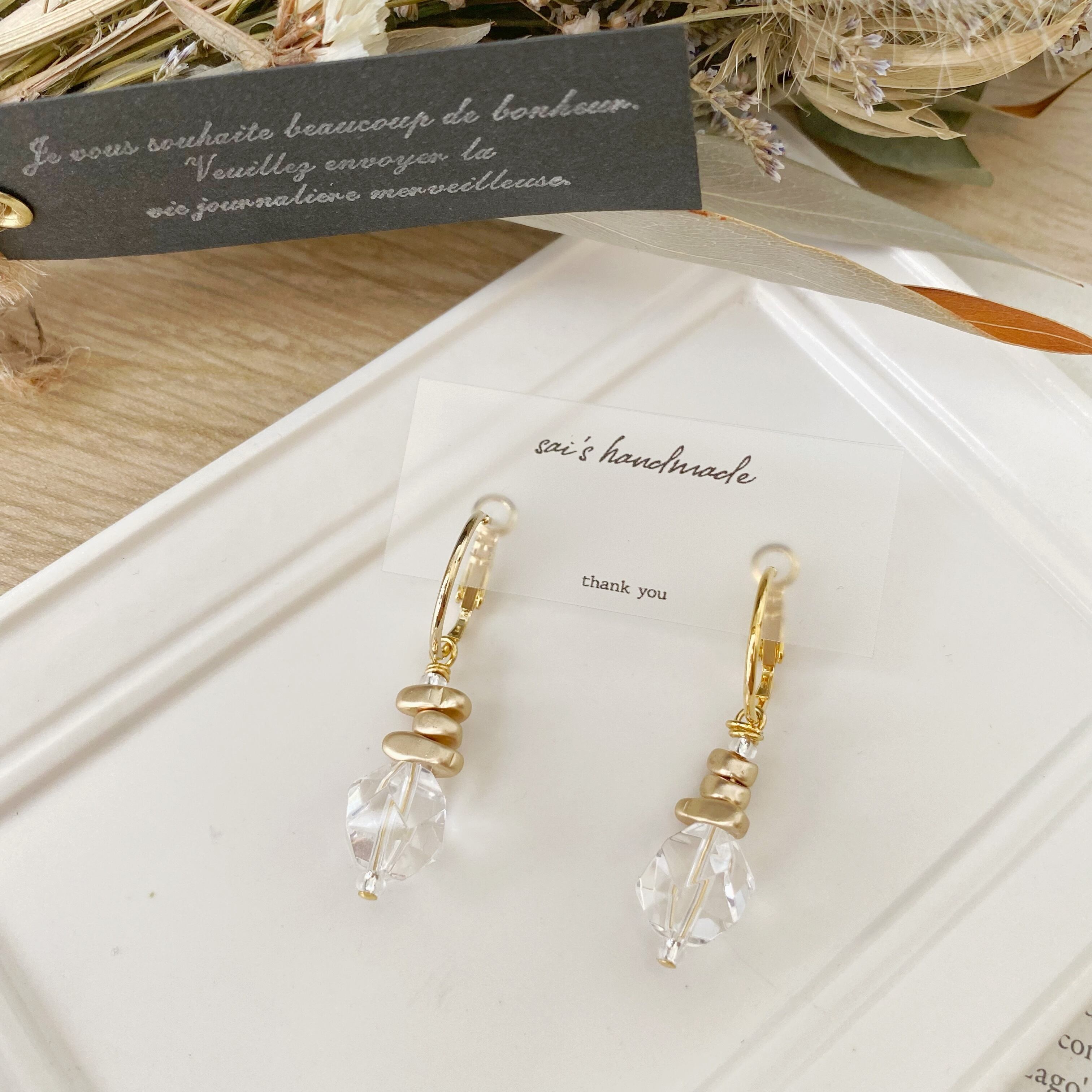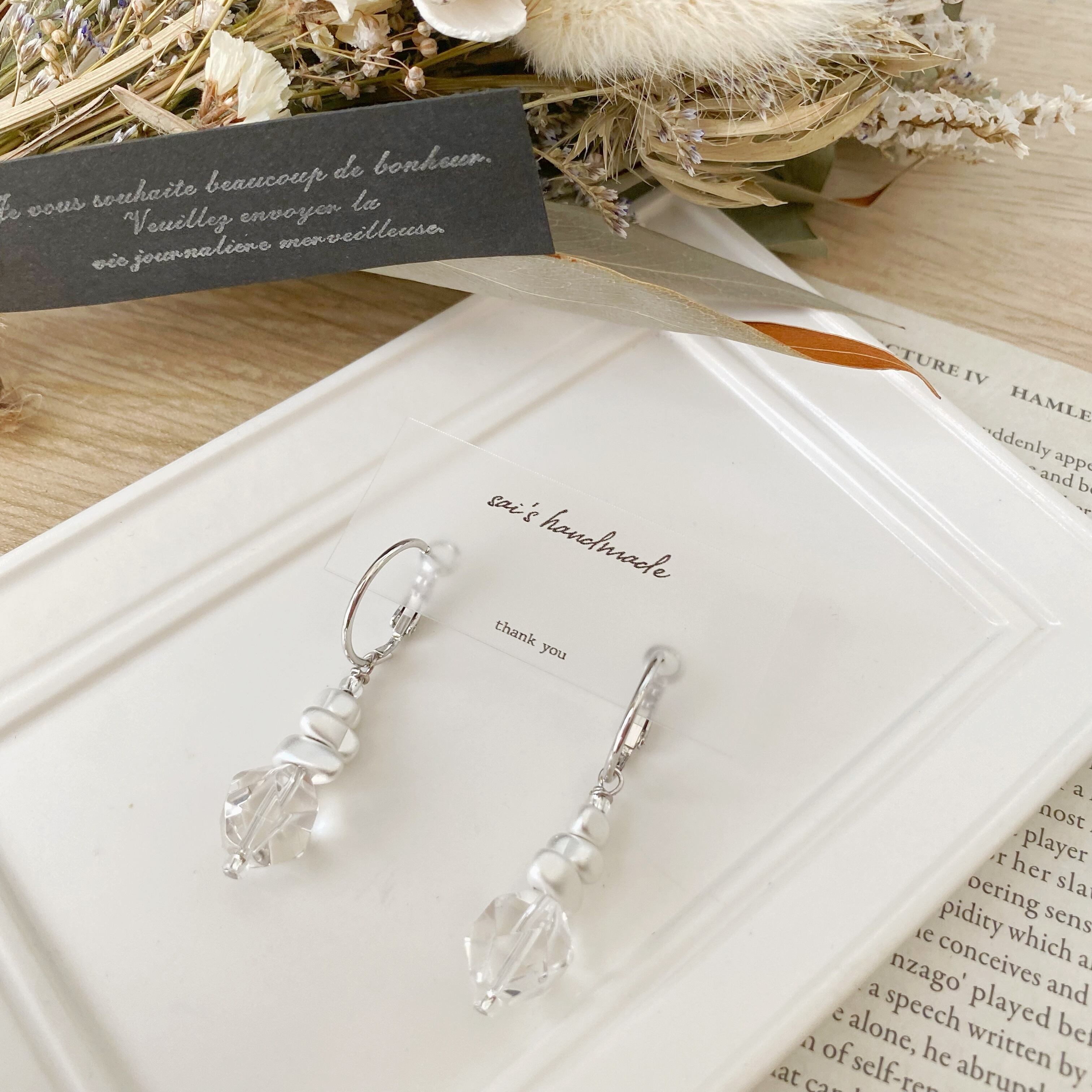 水晶とでこぼこビーズのシンプルピアス❁.。