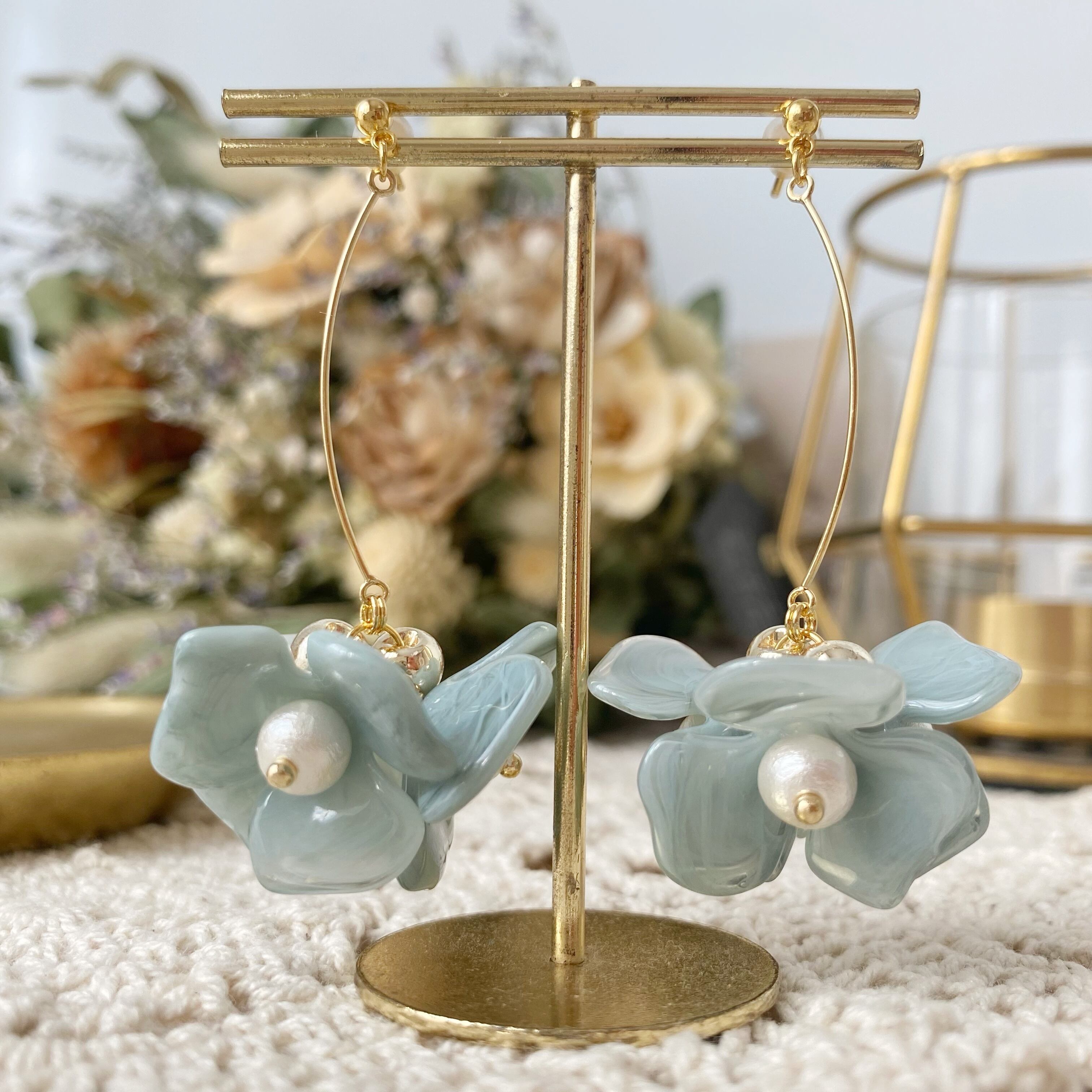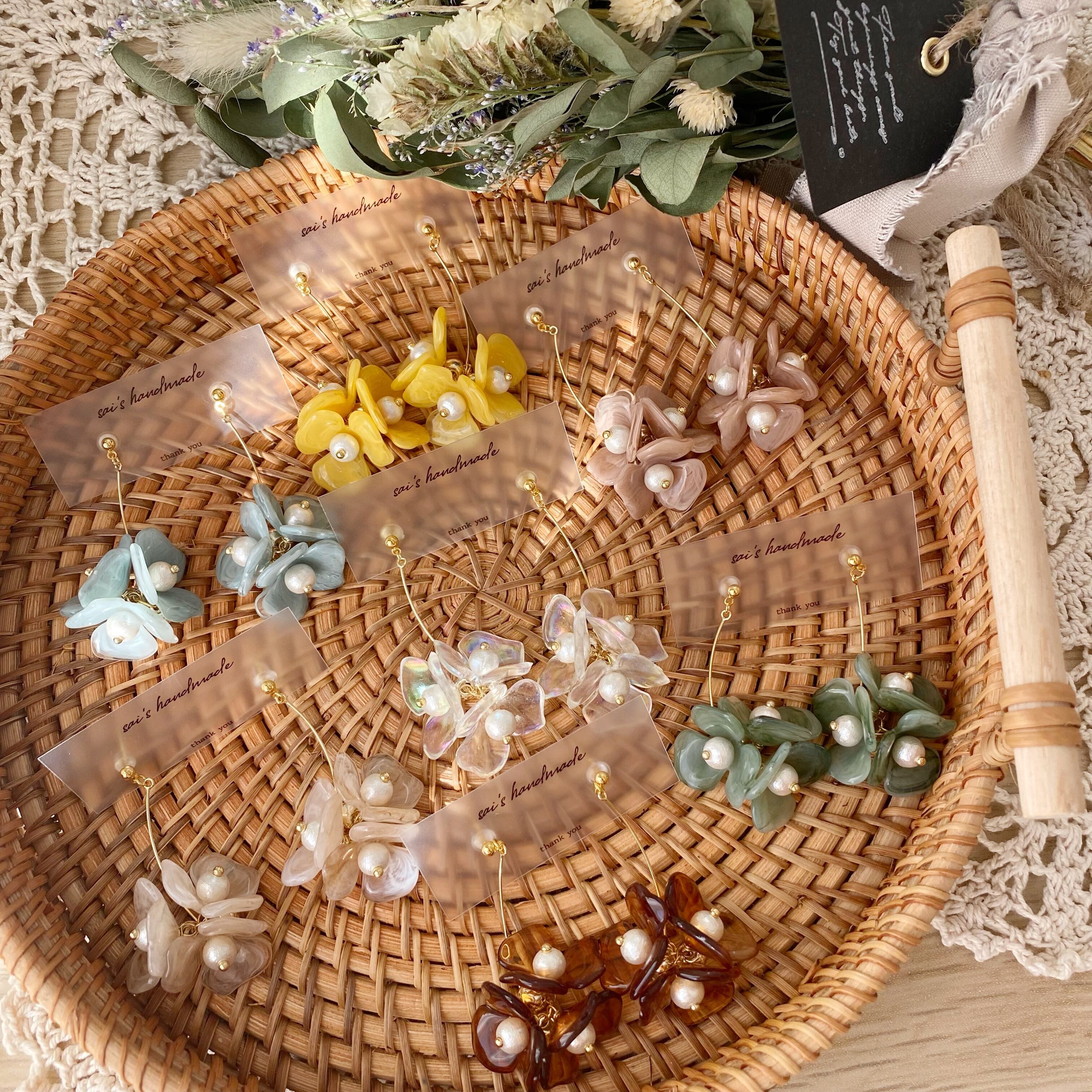 マーブルフラワーの揺れるアクセサリー ⚮̈ .゜