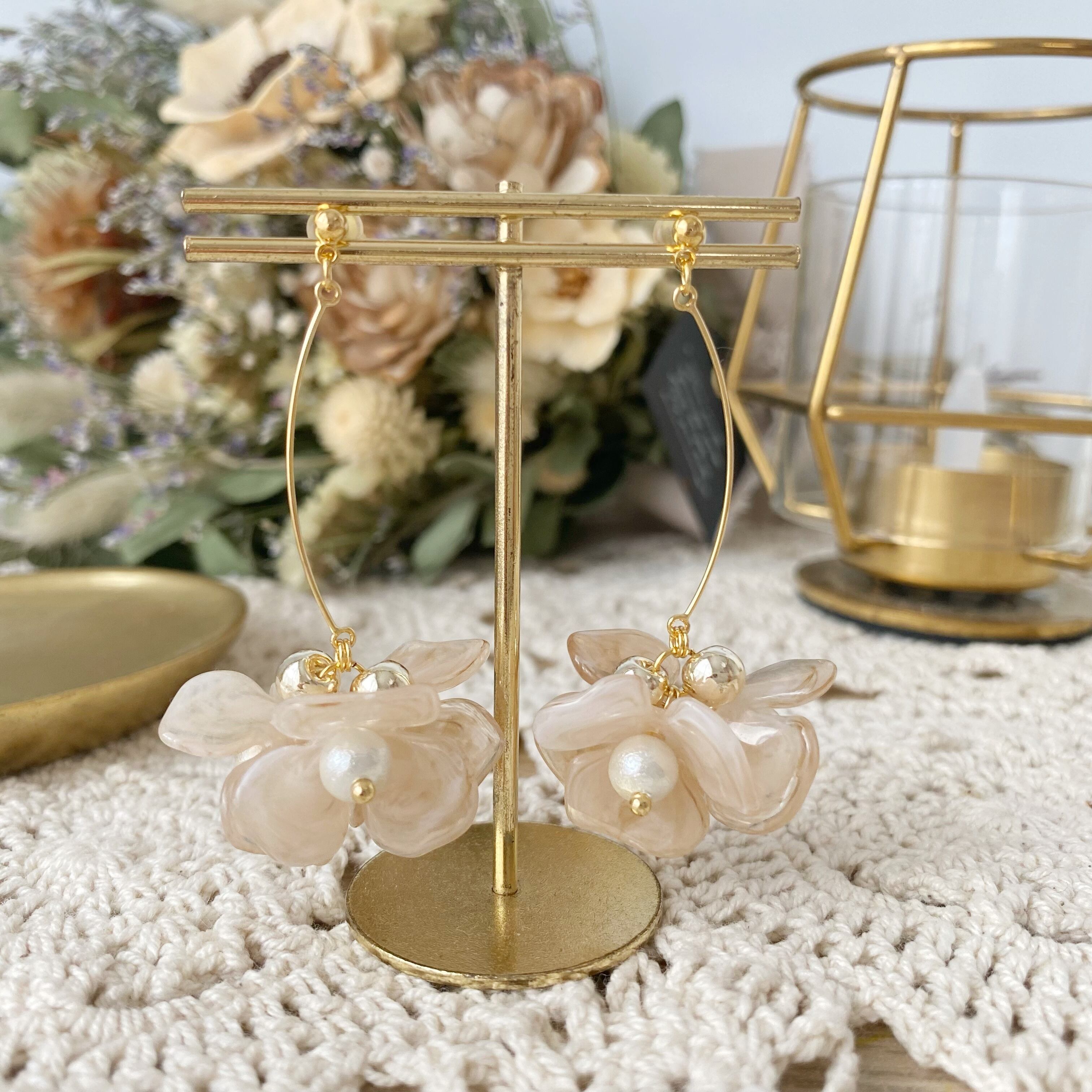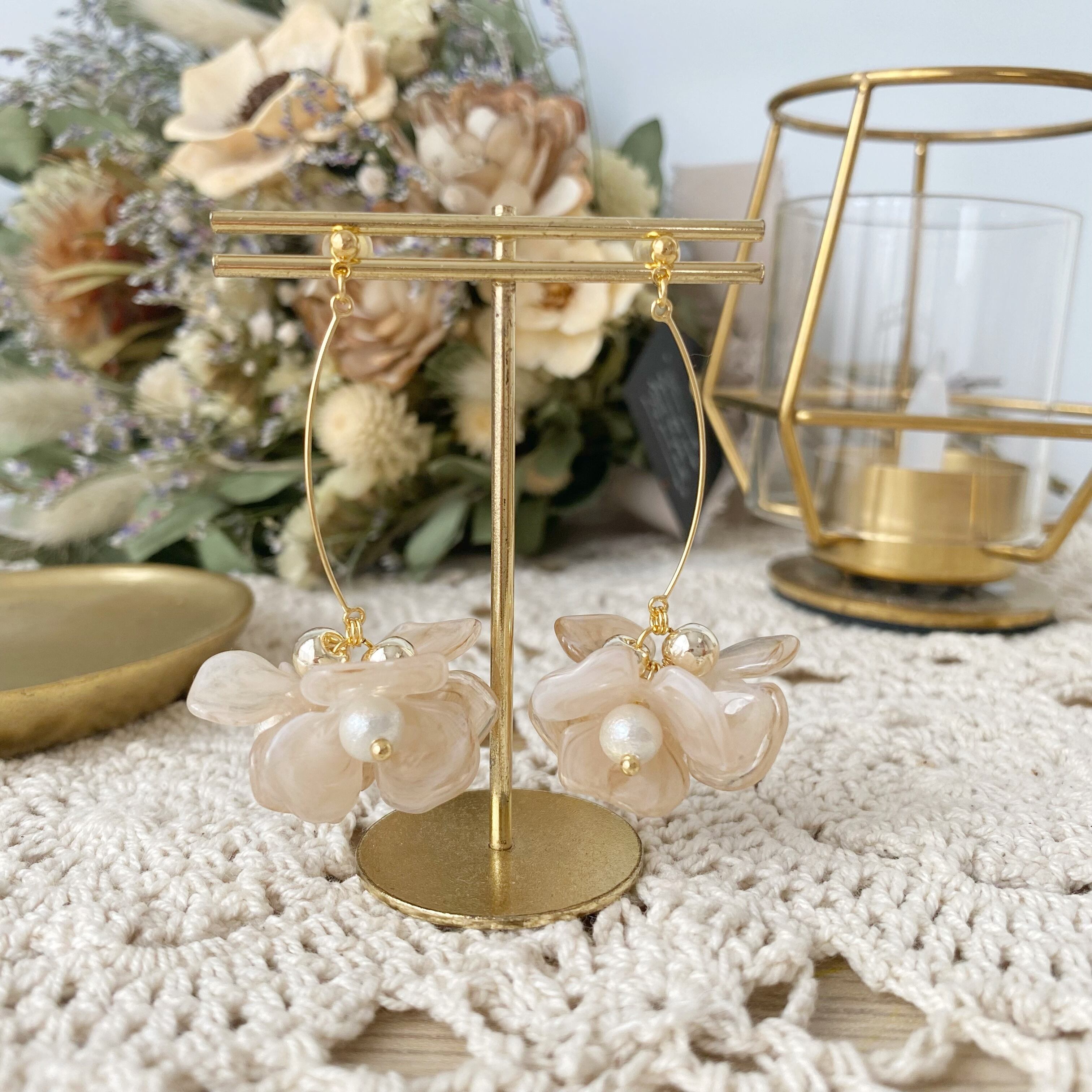 マーブルフラワーの揺れるアクセサリー ⚮̈ .゜