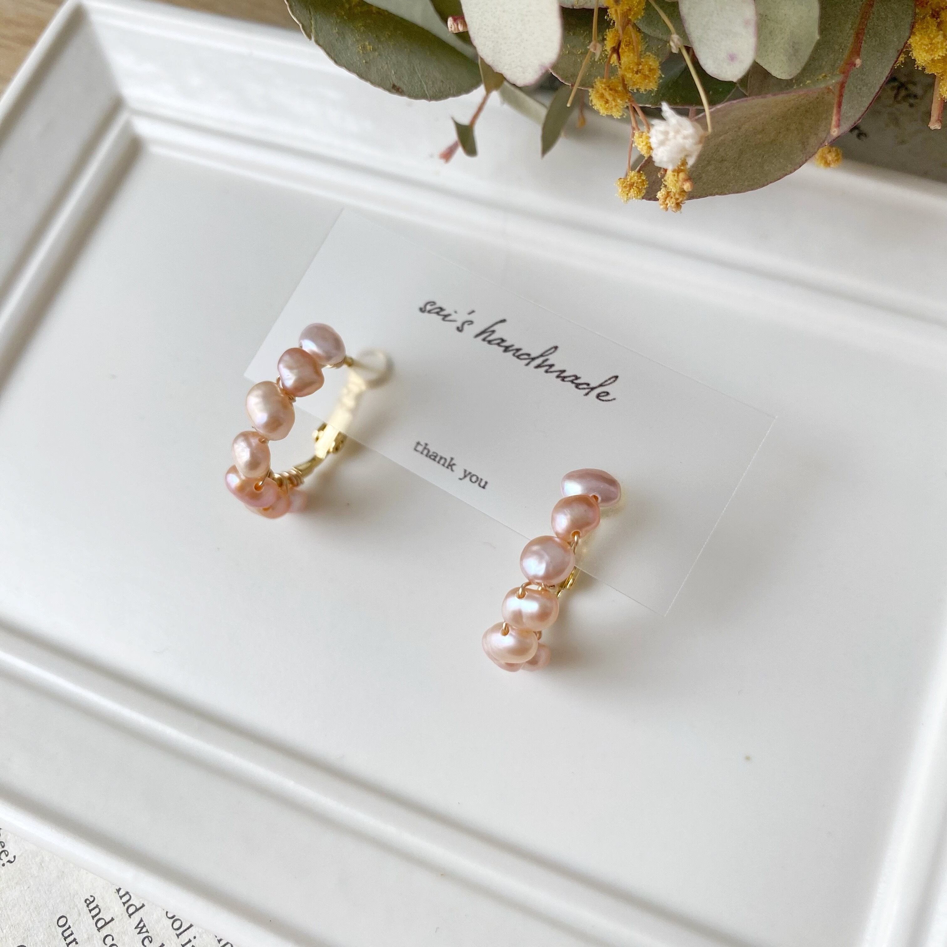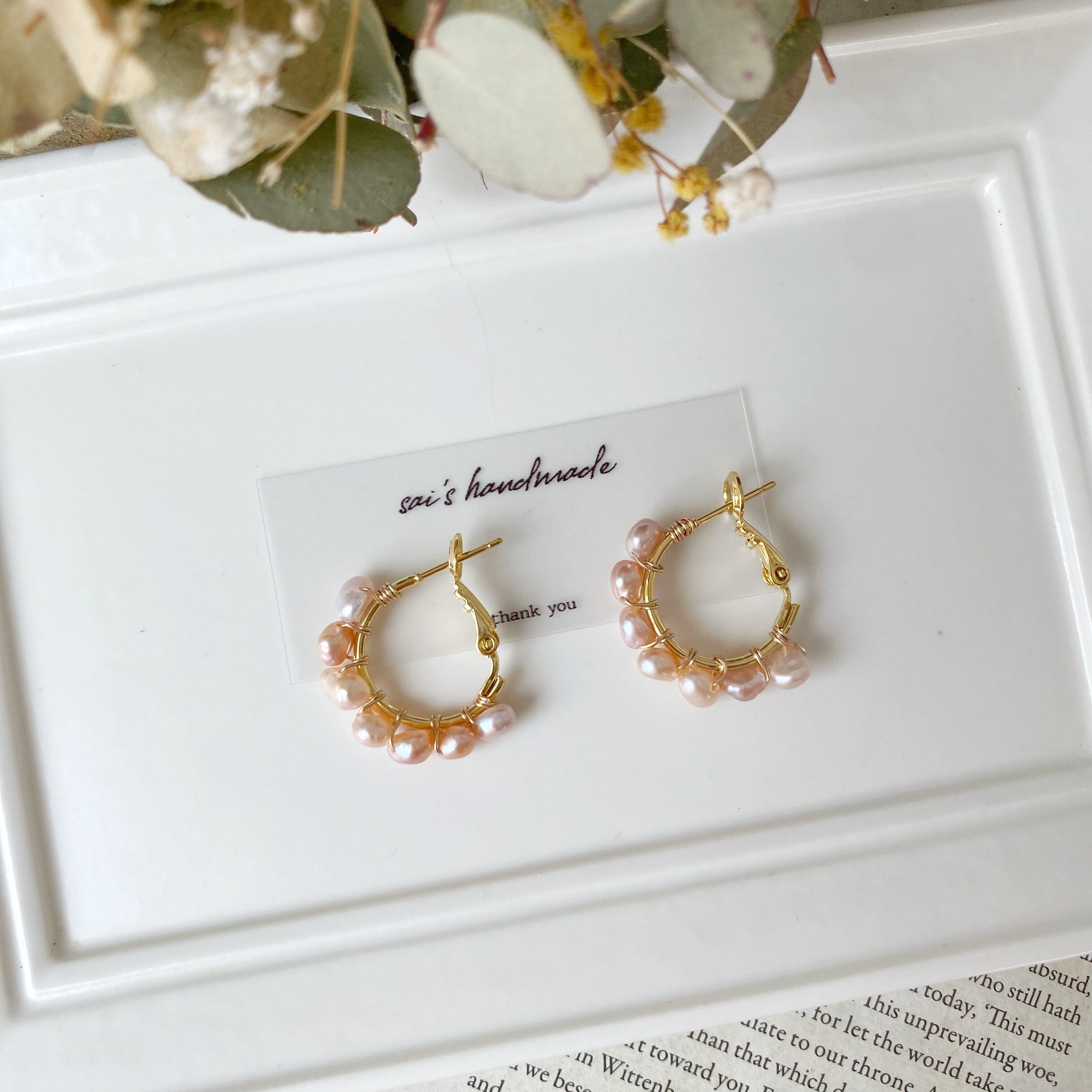 ピンク淡水パールのフープピアス⸝⸝⸝ ✧︎